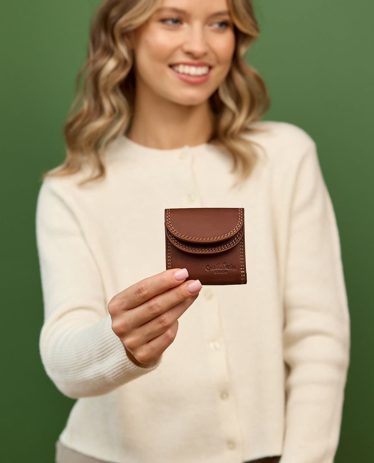 Mini Portemonnaie Geldbörse Klein Geldbeutel Party Festival Club Damen Herren Braun Leder
