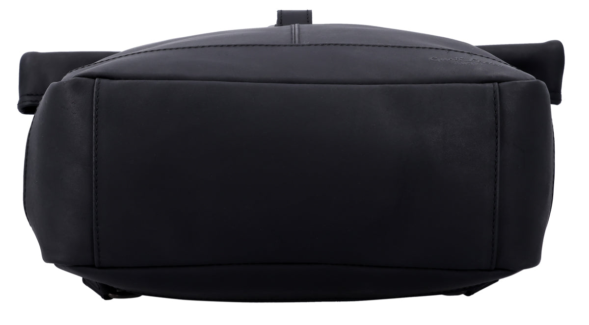 Ob für Schule, Uni oder Arbeit – unser Rolltop-Rucksack "Bendik" passt einfach immer. Denn er weiß mit seiner Flexibilität, seinem hohen Tragekomfort und dem großzügigen Platzangebot zu überzeugen. Dieser klassisch-robuste Daypack aus schwarzem Leder fällt dabei vor allem durch sein trendiges Rolltop auf – ein Look, an dem man momentan einfach nicht vorbeikommt.