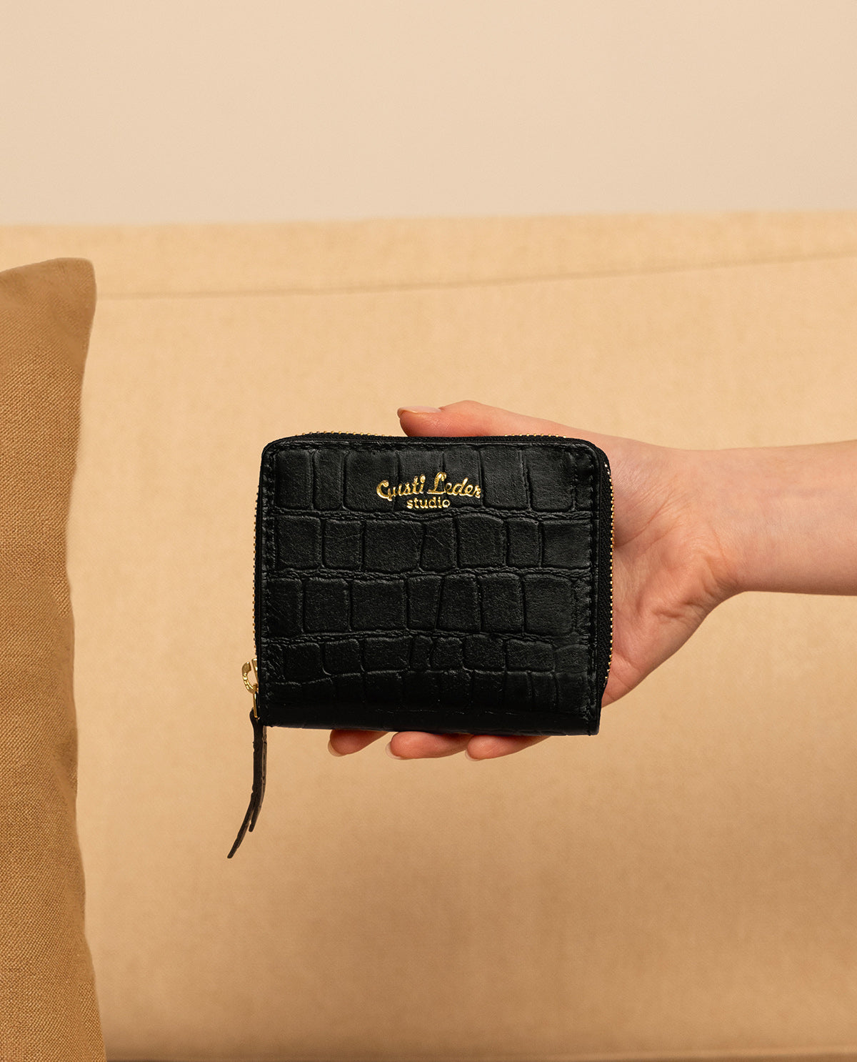 Du suchst ein klassisches Portmonnaie mit genug Platz für deine vielen Karten mit extragroßen Münzfach? "Monika" bietet dir genau das und besticht auch noch durch ihren trendy Kroko Look! Somit vereint Monika maximale Funktionalität und liegt dabei trotzdem voll im Trend.