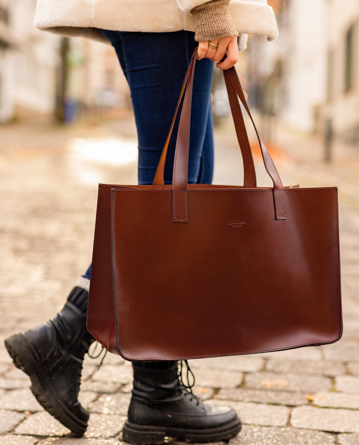 Handtasche Ledertasche Shopper Umhängetasche Berliner Großstadt Flair Braun Leder