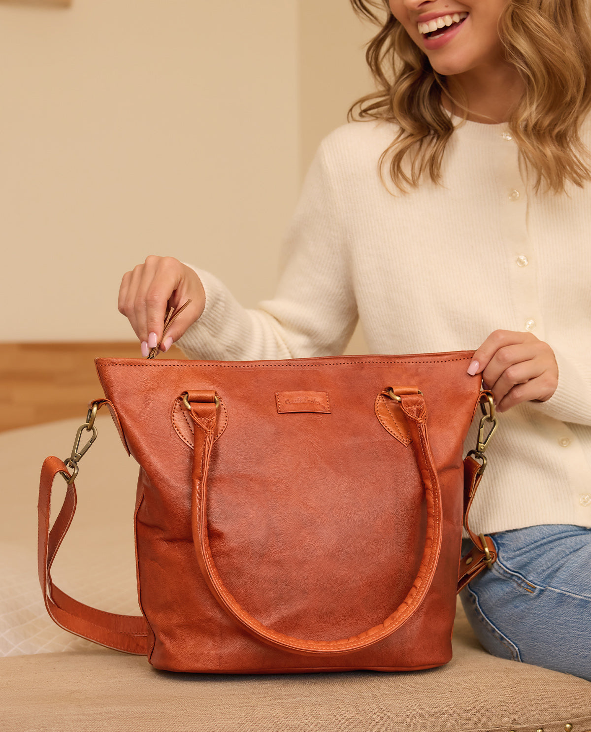 Handtasche Umhängetasche Ledertasche Shopper Damen Designed in Berlin Braun Leder