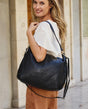 Du suchst einen klassischen Shopper, der Dich nicht im Regen stehen lässt? Dann ist „Hannah“ genau die Richtige für Dich. Diese mittelgroße Umhängetasche besteht aus robustem und widerstandsfähigem Büffelleder in elegantem Schwarz. So liegst Du voll im Trend und hast dennoch durch das geräumige Innenfach genug Platz für alles, was Du bei einem Stadtbummel oder im Berufsalltag brauchst. Inspiriert vom urbanen Berliner Großstadt Flair vereint „Hannah“ Stil und Funktionalität.