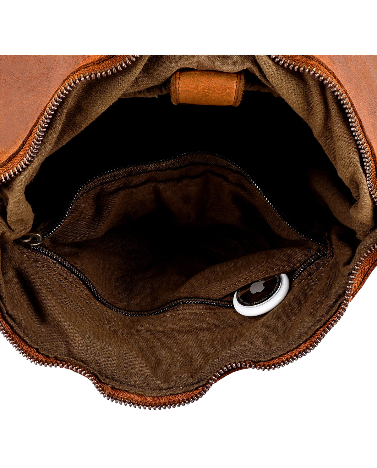 Der Rucksack "Aileen" verbindet Funktionalität mit einem modernen, zeitlosen Design und ist aus hochwertigem, gewaschenem Leder gefertigt, das ihm einen authentischen Vintage-Look verleiht. Inspiriert durch den lebendigen Berliner Großstadt Flair, begleitet Dich dieser Rucksack stilvoll bei jedem Schritt – ob im Alltag, auf Reisen oder bei der Arbeit. Seine robuste Verarbeitung garantiert Dir Langlebigkeit, während das durchdachte Design für eine elegante Erscheinung sorgt. Zusätzlich verfügt "Aileen" über ein integriertes AirTag-Fach, sodass Du Deinen Rucksack jederzeit leicht orten kannst.