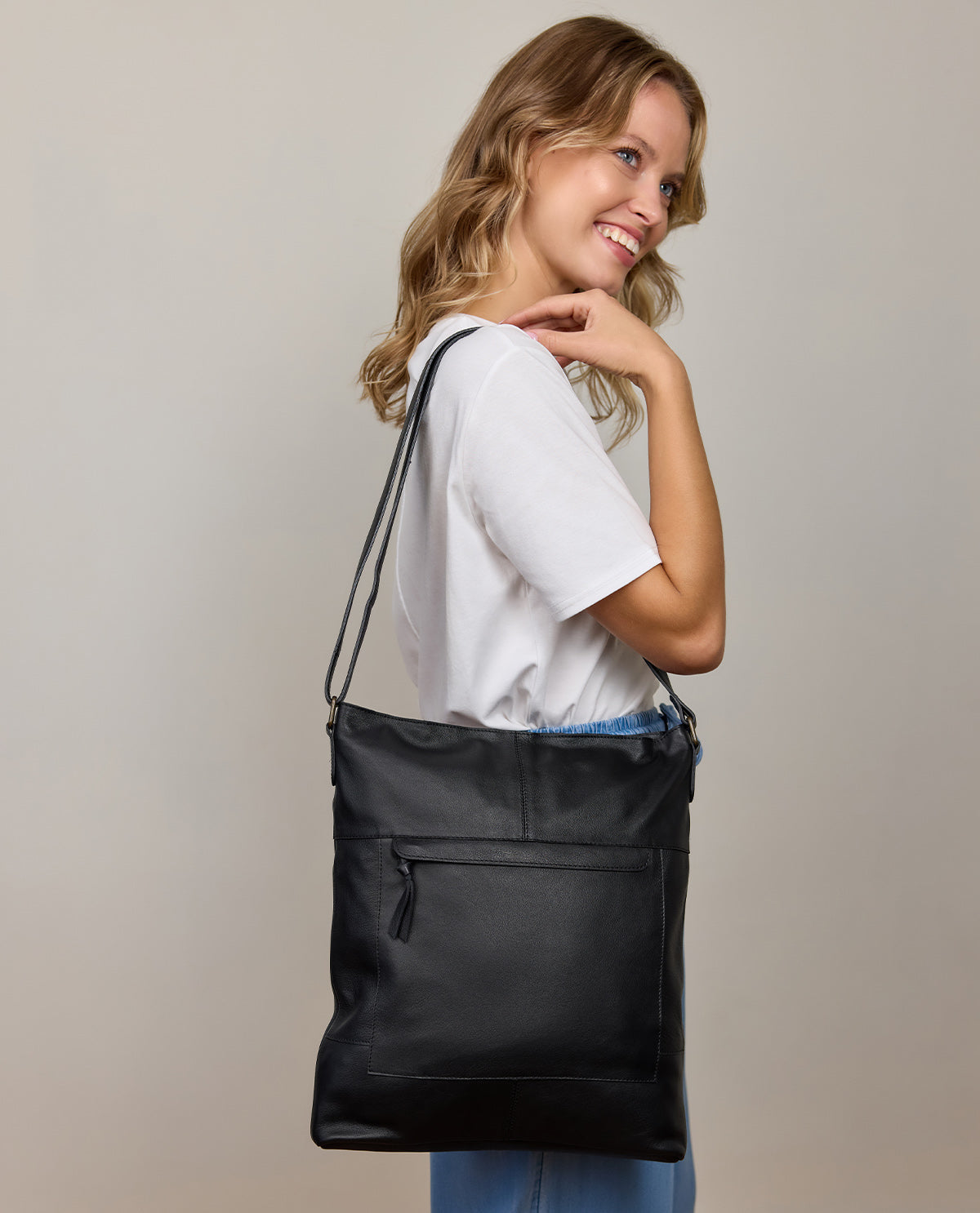 Umhängetasche Handtasche Shopper Ledertasche Schwarz Leder