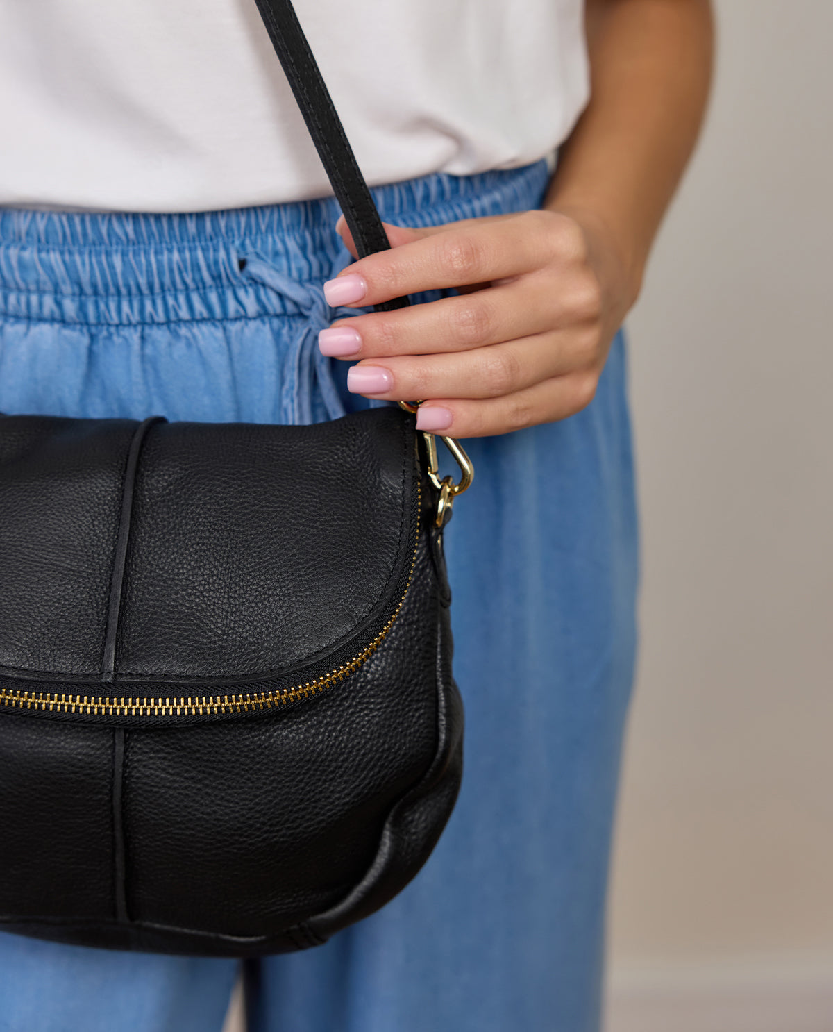 Die Umhängetasche „Iselin“ vereint zeitlose Eleganz mit durchdachter Funktionalität – der perfekte Begleiter für Deinen Alltag und besondere Anlässe. Gefertigt aus hochwertigem schwarzem Leder, überzeugt sie mit einer weichen Haptik und einer langlebigen Verarbeitung. Die edlen Metallelemente setzen dezente Akzente und unterstreichen die hochwertige Qualität.