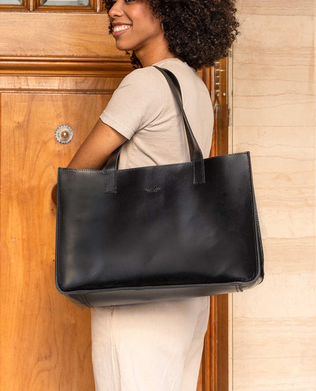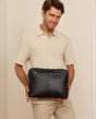 Hochwertige schwarze Ledertasche für Laptops aus pflanzlich gegerbtem Leder – Stilvolle Eleganz trifft auf praktische Funktionalität