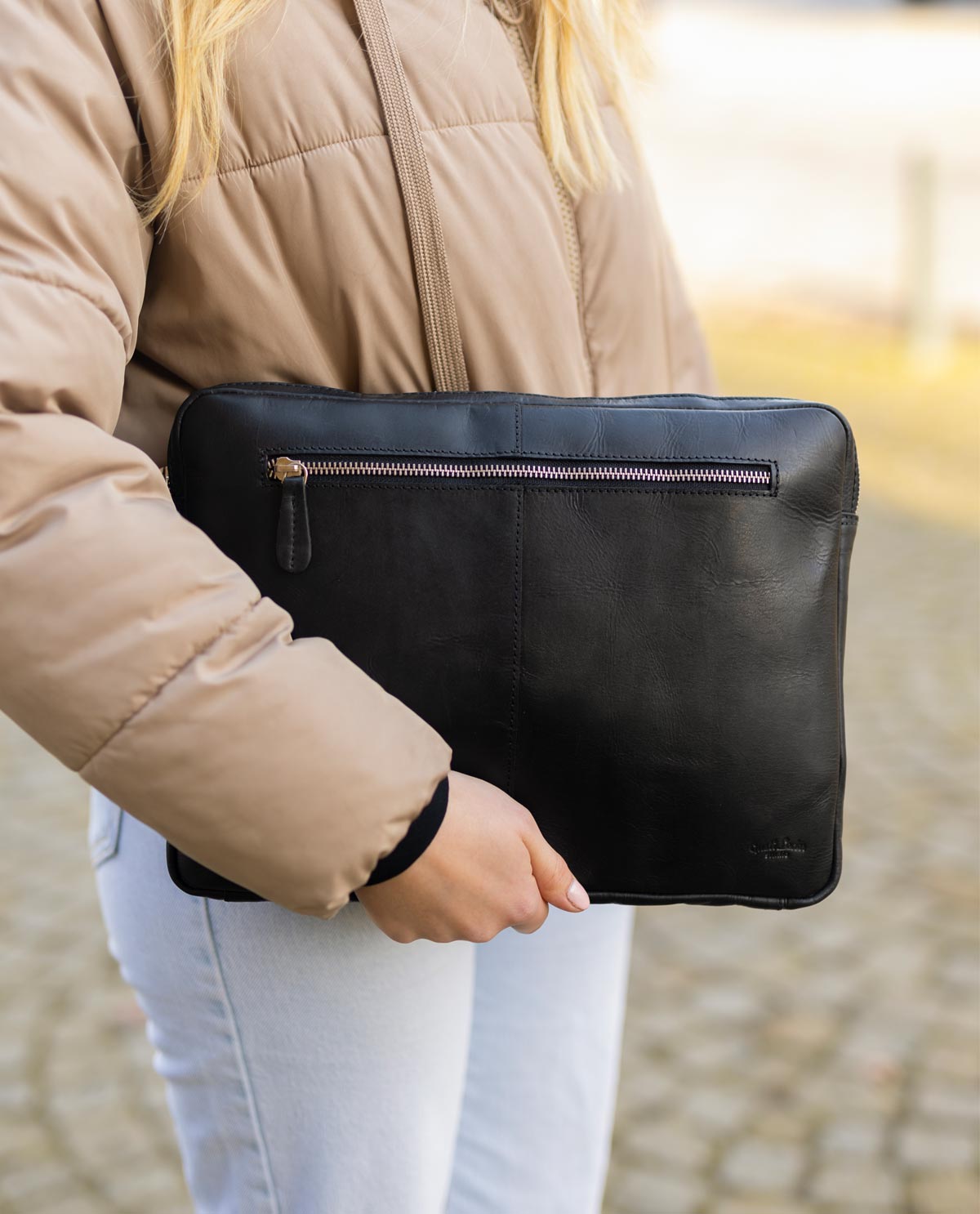 Pflanzlich gegerbt Laptoptasche Laptophülle Ledertasche Schwarz Leder