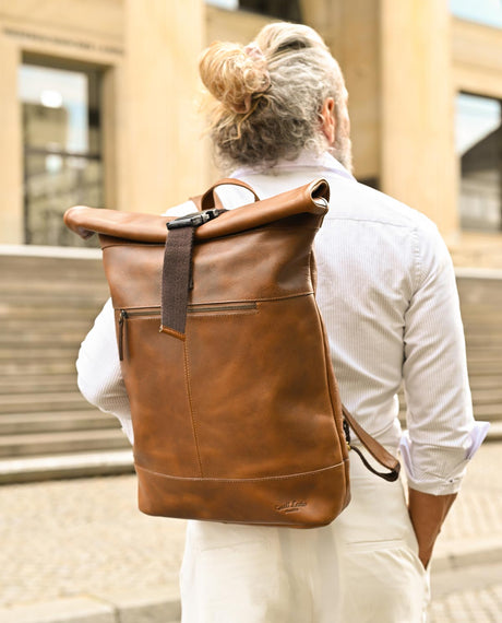 Ein Wochenendtrip steht an und du hast keine Lust, den großen Koffer mitzunehmen? Dann legen wir dir unsere Reisetasche "Ruben" ans Herz. Das robuste Leder ist äußerst stabil und hochwertig verarbeitet, sodass diese Tasche dich mit Sicherheit sehr lange begleiten wird. Auch das schlichte Vintage-Design spricht für diese Reisetasche, mit der du auf Bahnhöfen und Flughäfen neidische Blicke auf dich ziehen wirst. Eine Ledertasche, die immer lässig und chic kombiniert. Inspiriert durch Berlin, bringt "Ruben" urbanen Charme und Funktionalität in jedes Abenteuer.