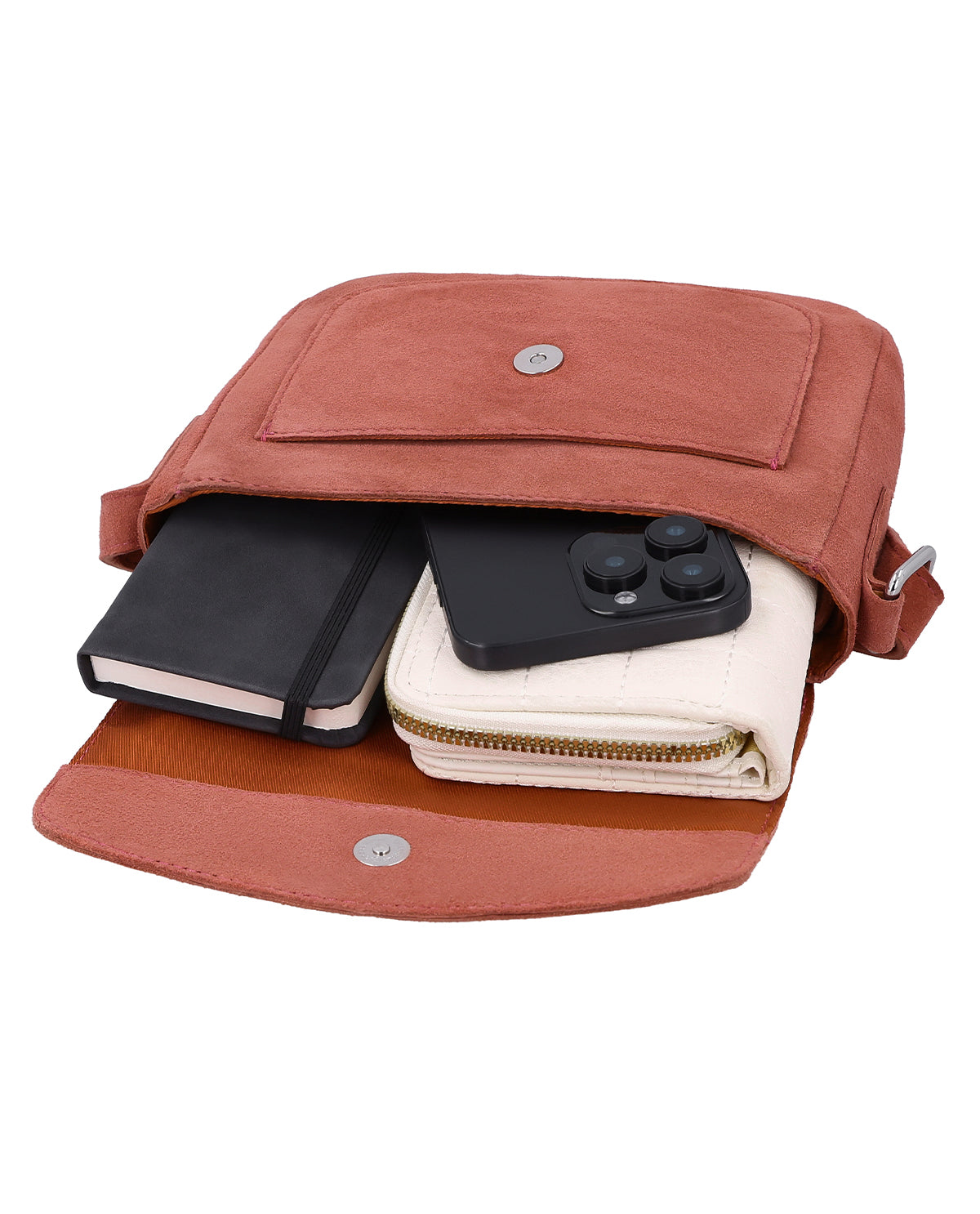 "Mariel" bietet Dir nicht nur Stil, sondern auch Struktur: Die integrierte Außentasche sorgt für schnellen Zugriff auf Dinge wie Handy oder Tickets, während das geräumige Hauptfach ausreichend Platz für Deine täglichen Essentials bietet. Die hochwertige Verarbeitung und die sanft abgerundete Silhouette verleihen der Tasche einen zeitlosen Look, der sich perfekt zu vielen Outfits kombinieren lässt – ob für Arbeit, Freizeit oder ein Treffen mit Freundinnen. Mit "Mariel" entscheidest Du Dich für eine Umhängetasche, die Ästhetik, Komfort und Funktionalität in harmonischer Weise miteinander verbindet.