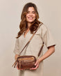 Umhängetasche Ledertasche Handtasche Crossbody Tasche Damen Braun Glänzend Leder - Made in Italy