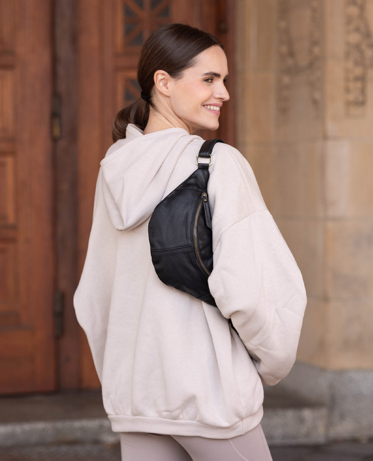 Handbag too big but pockets not big enough? We've got the perfect solution. “Cillian” can go with you to events where a big bag would just get in the way. Who wants to wear a cross body bag to a concert? Handbags just get in the way when you're dancing! “Cillian” helps you keep your essentials close by. There’s plenty of space in this sheep leather belt bag for your phone, keys, and cash. Wear it around your waist or casually over your shoulder. It's up to you! “Cillian's” minimalist design means you can wear this practical, yet stylish, bag with any outfit. Summer's on the way. So get ready for your next festival!