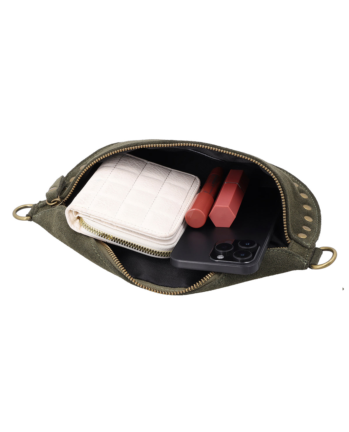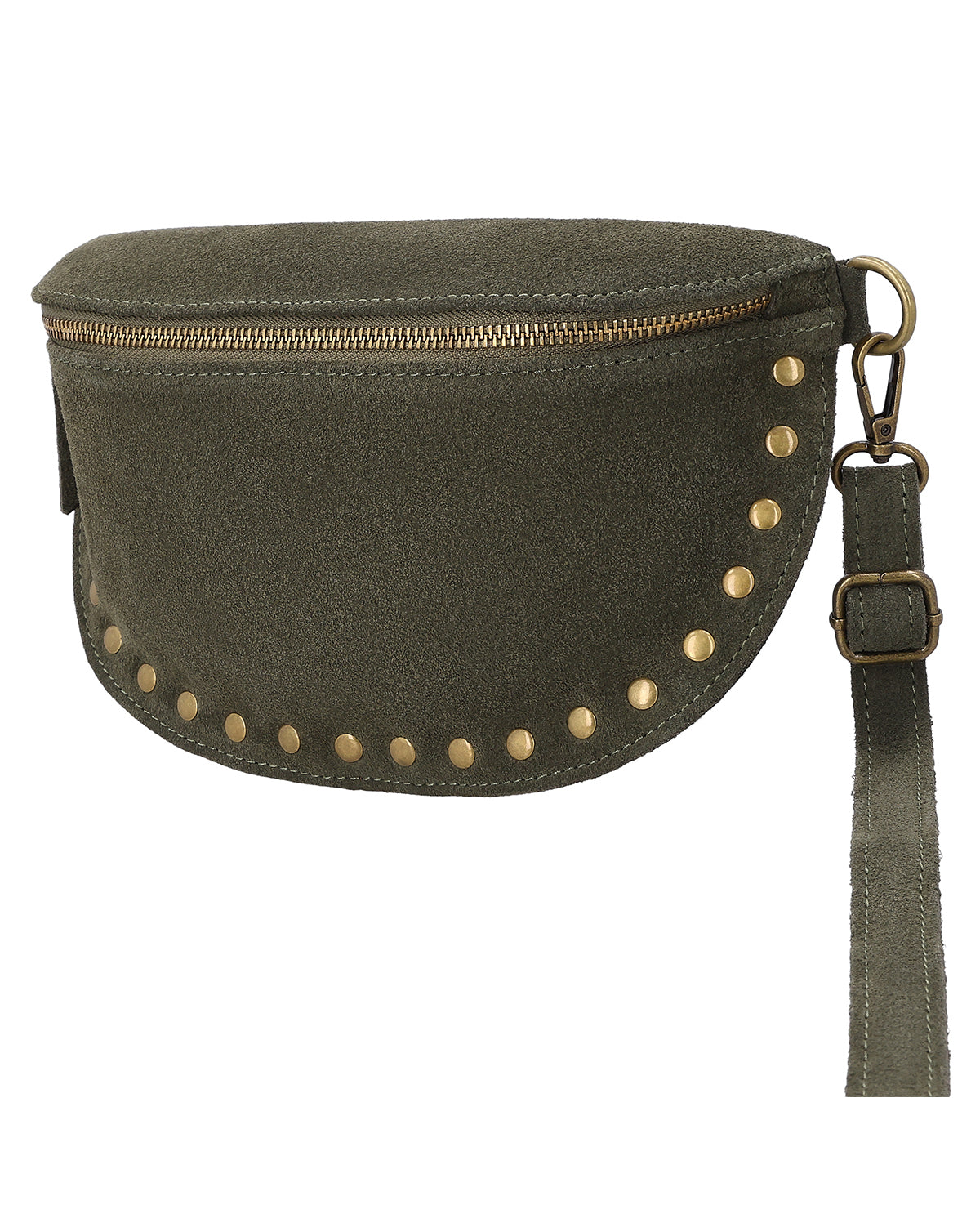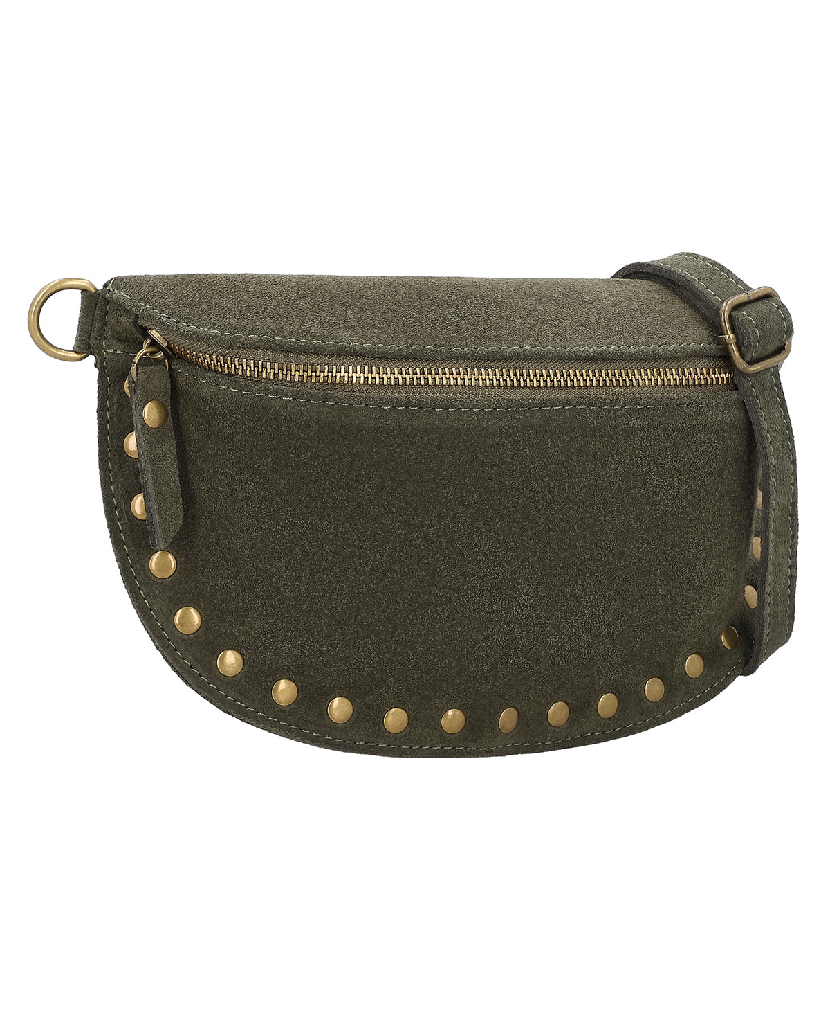The small "Tatjana" shoulder bag is a leather handbag for women who like to add stylish accents to their everyday look. In an elegant shade of green and embellished with gold studs, this leather bag has a modern and feminine look. Whether you're strolling through town, traveling, or going out in the evening, "Tatjana" remains compact, offers space for your most important essentials, and complements your look with a touch of elegance. This leather shoulder bag combines everyday practicality with a detail that immediately catches the eye.
