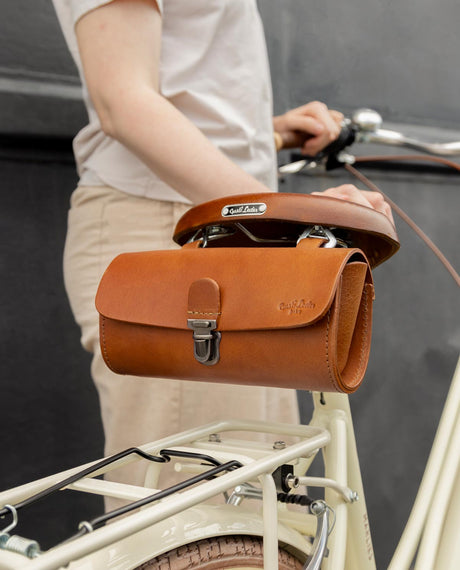 They're compact, they're practical, they're understated, and they're beautiful: our high-quality leather saddlebags. Whether classic or rustic , they're a perfect match for any bike and offer plenty of space for all your essentials. Are you cautious and like to be prepared for any unforeseen incidents? Perfect. Our saddlebags offer enough space for things like a repair kit, a spare tube , a small tool kit , and an emergency first aid kit.