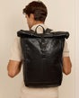 Our “Bendik” roll-top backpack is the perfect companion, no matter if you’re going to school, uni or work. He’ll win you over with his flexibility, comfort, and space. This sturdy, classic daypack made of black leather stands out from the crowd with its trendy roll top—a look that you just can’t ignore at the moment.