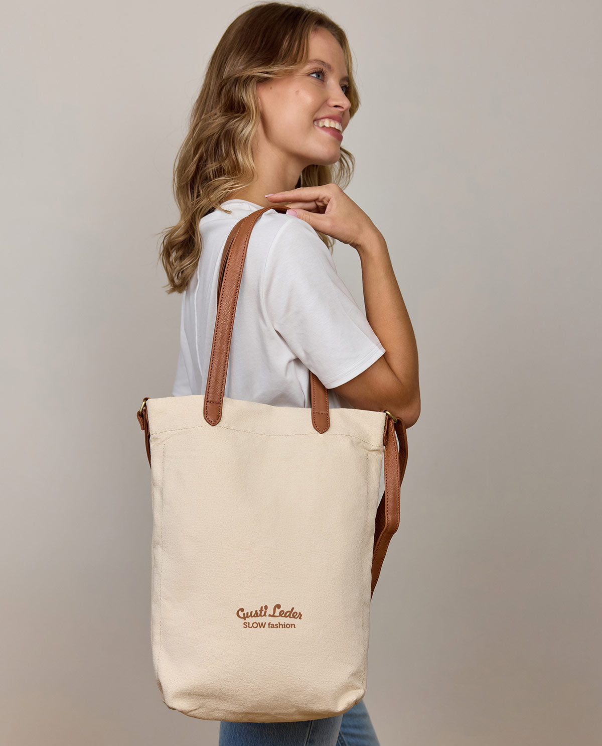 This fabric bag is the perfect companion for every day. With its modern design and robust leather handles, it offers not only style but also comfort and durability. The high-quality craftsmanship ensures that you will enjoy this bag for a long time.