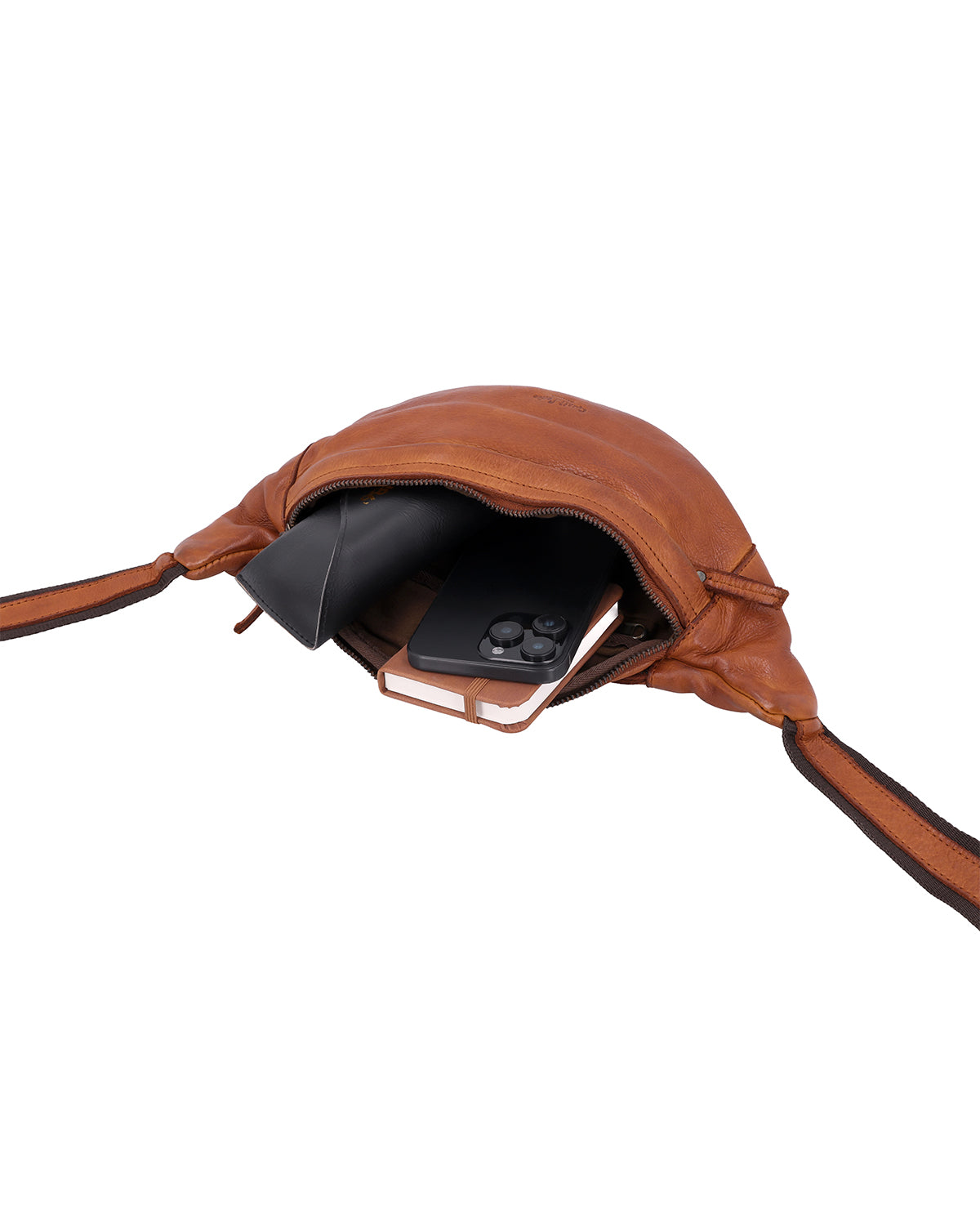 Our simple, no-fuss belt bag “Spencer” will win you over with its minimalist design, quality, and functionality. The high-quality processed cowhide leather means this belt bag is strong and sturdy. It has multiple zipped pockets where you can keep your festival essentials safe. Experienced festival-goers and concert lovers will really appreciate this bag's robustness. There's plenty of space for your wallet, phone, keys and more inside. Adjust this bag to fit you perfectly using the adjustable strap and plastic buckle. Wear “Spencer” over your shoulder or round your waist, whatever suits you. Our motto is: “Spencer” is simple. Practical. Good.