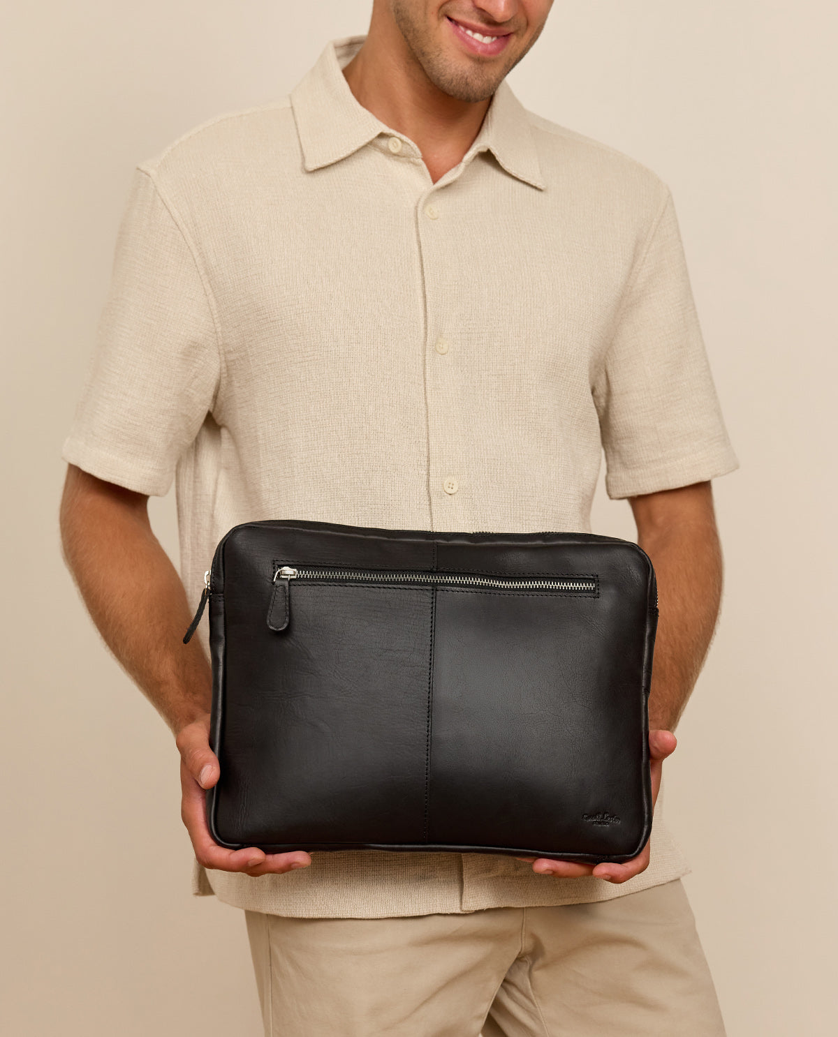 Discover our exclusive laptop bag, which impresses not only with its timeless design but also with its outstanding functionality. This leather bag in elegant black is the ideal companion for your business appointments, university documents, or personal needs.