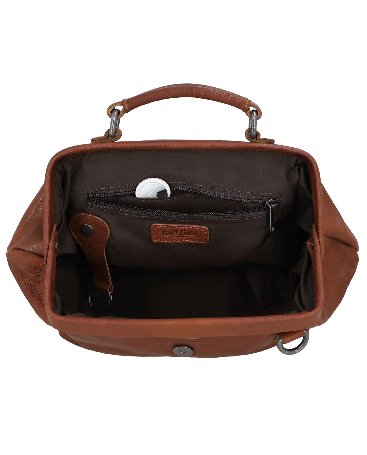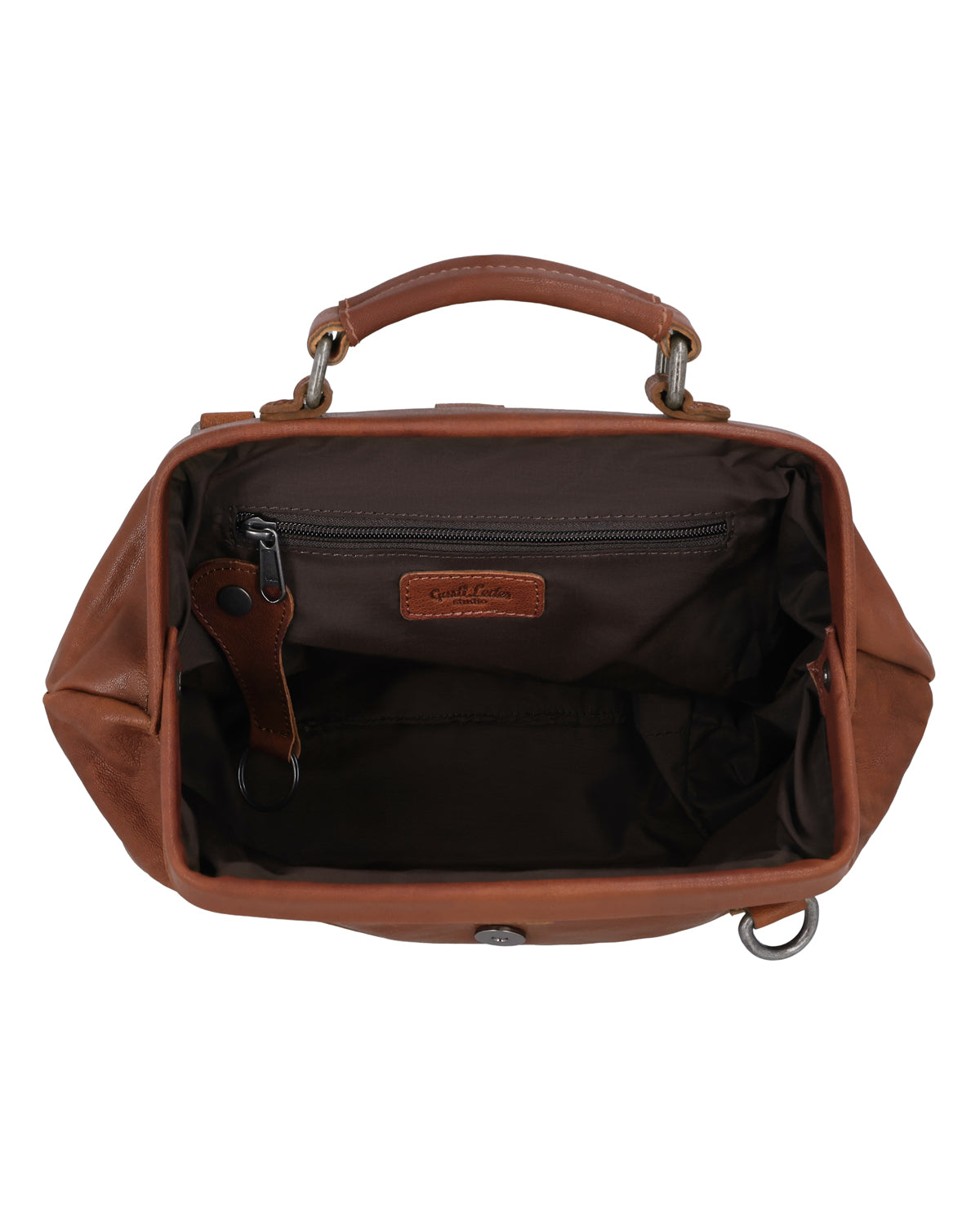 For fans of classic doctor's and midwife's bags, "Lillith" is an absolute must-have! It reinterprets this unique look and combines it with the size of a compact handbag. Practical for everyday use: with anintegrated key ring, you have your essentials quickly to hand, and a hidden AirTag compartment gives you extra peace of mind when you're on the go. You can also carry "Lillith" in two ways – classically in your hand or with the additional strap as a crossbody bag. Inspired by the urban flair of Berlin, "Lillith" combines style and functionality.