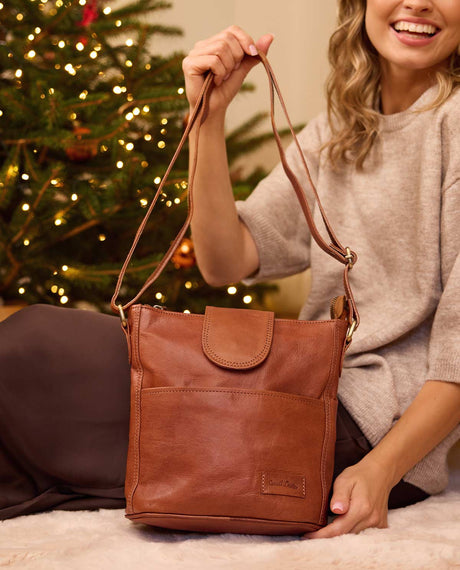 Our goatskin shoulder bags are a bit stiffer at first, but will quickly become very supple and soft with regular use . Our cowhide or buffalo leather shoulder bags, on the other hand, are somewhat more durable than goatskin bags due to their inherently stronger material. Even after some time, this leather still feels a bit firmer in texture, although these models will naturally soften as well. So decide for yourself which leather best meets your needs for your new shoulder bag.