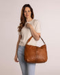 Are you looking for a classic tote bag that won’t let you down in the rain? Then “Hannah’s” exactly what you’ve been looking for! This medium-sized shoulder bag is made of sturdy cowhide leather and comes in a soft camel brown. You’ll be on-trend and still have enough space for everything you need when you’re out and about in the city or at the office, thanks to the spacious compartment inside.