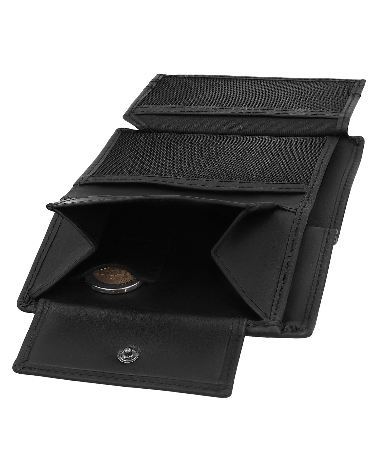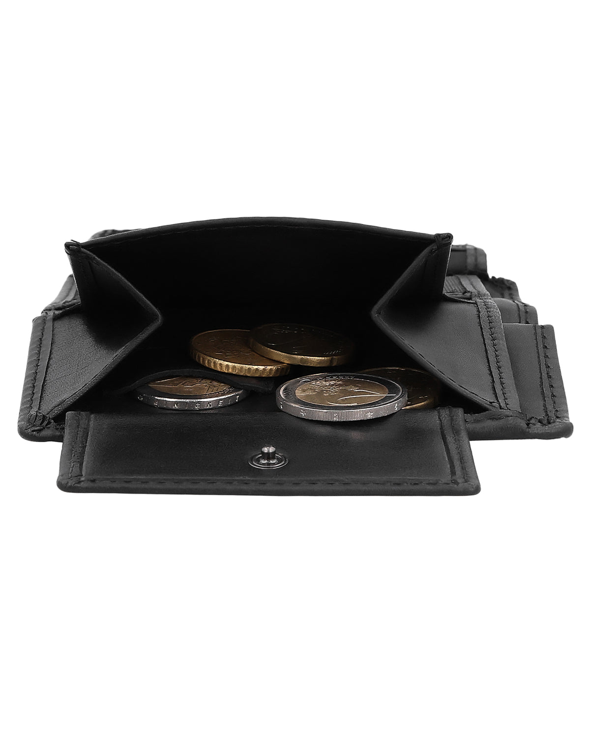 Do you want your wallet to simply serve its purpose? Then "Gabe" is the perfect wallet for you! This simple and practical wallet is completely minimalist, but has plenty of space for everything you need. What's particularly cool about "Gabe" are its card slots: they are semi-transparent, so you can see at a glance which cards you have in which slot. The coin compartment can be securely closed with a snap fastener, and there's also room for your bills in "Gabe." For those little everyday moments, there is also an extra coin compartment for a single coin – ideal if you want to have something quickly to hand. Thanks to integrated RFID protection, your cards are also reliably protected against unwanted scanning. The handy format fits in any pocket and impresses with its classic, timeless design. The robust leather can withstand anything and becomes even more beautiful over time.
