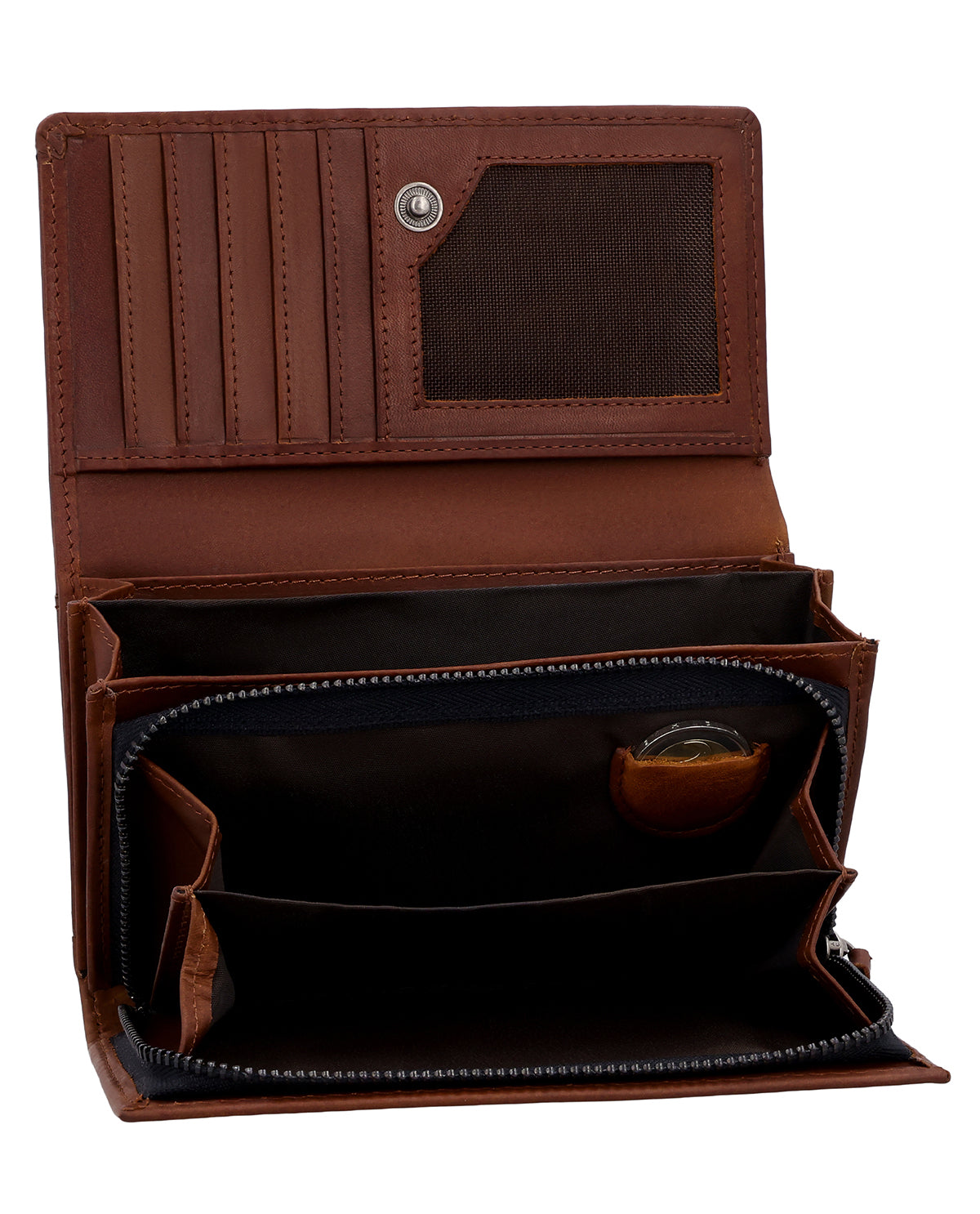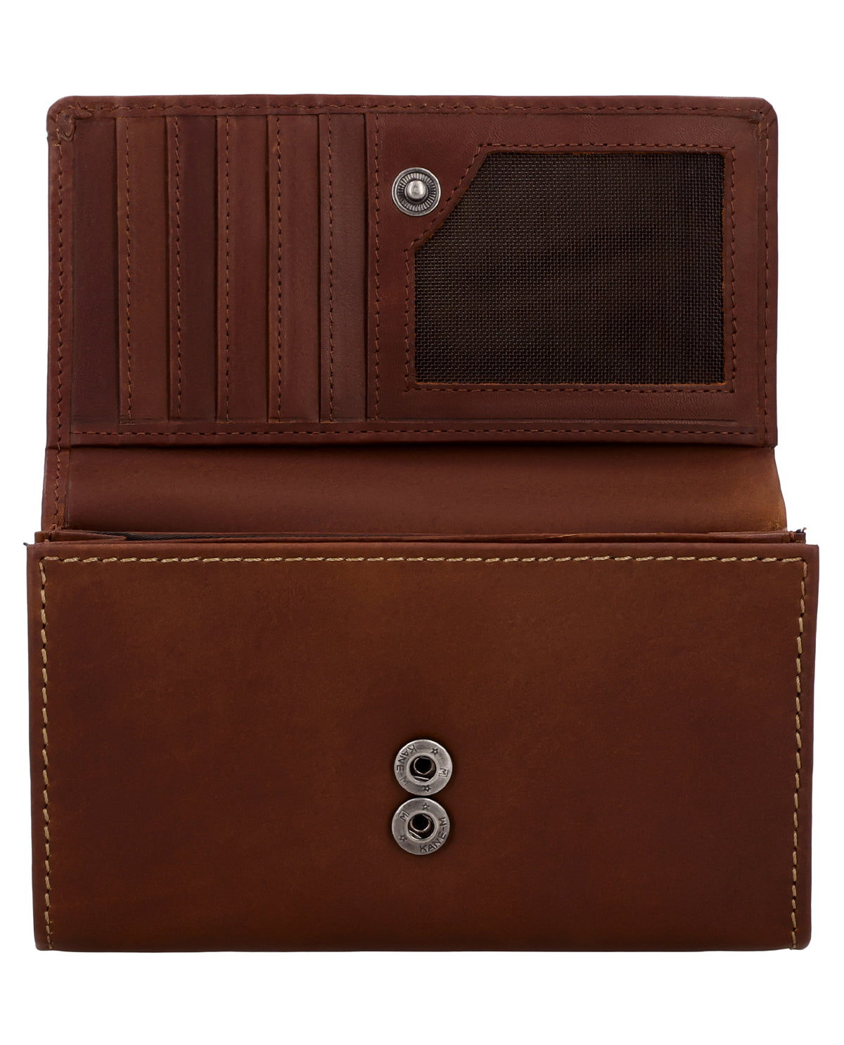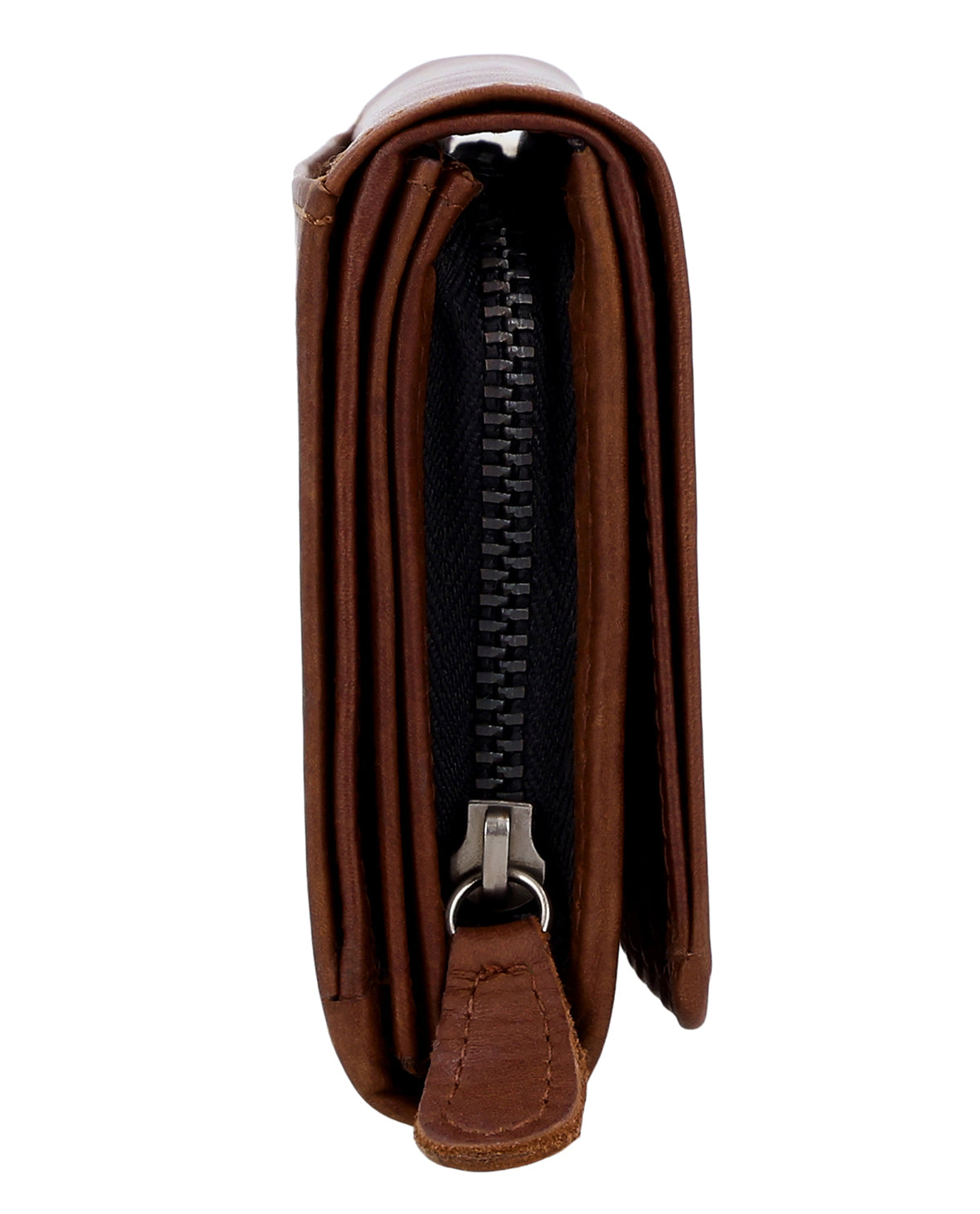 With our "Gemma" wallet, you have everything you need: cards, bills, change, and tickets all have their own place. The two coin compartments can be closed with a zipper. There is also an extra coin compartment for a single coin – perfect if you want to have a suitable coin quickly to hand. "Gemma" has space for at least five cards, and we also offer a card slot with a transparent window for your ID card, for example. Your bills are safely stored in two separate compartments. Thanks to integrated RFID protection, your cards are also reliably protected against unwanted scanning. The rest of the wallet is held together by a snap fastener. This allows you to quickly access your money, but it is still protected from falling out. The wallet is made of sturdy cowhide leather, making it a true everyday hero: perfect for frequent shoppers and those who want to become one!