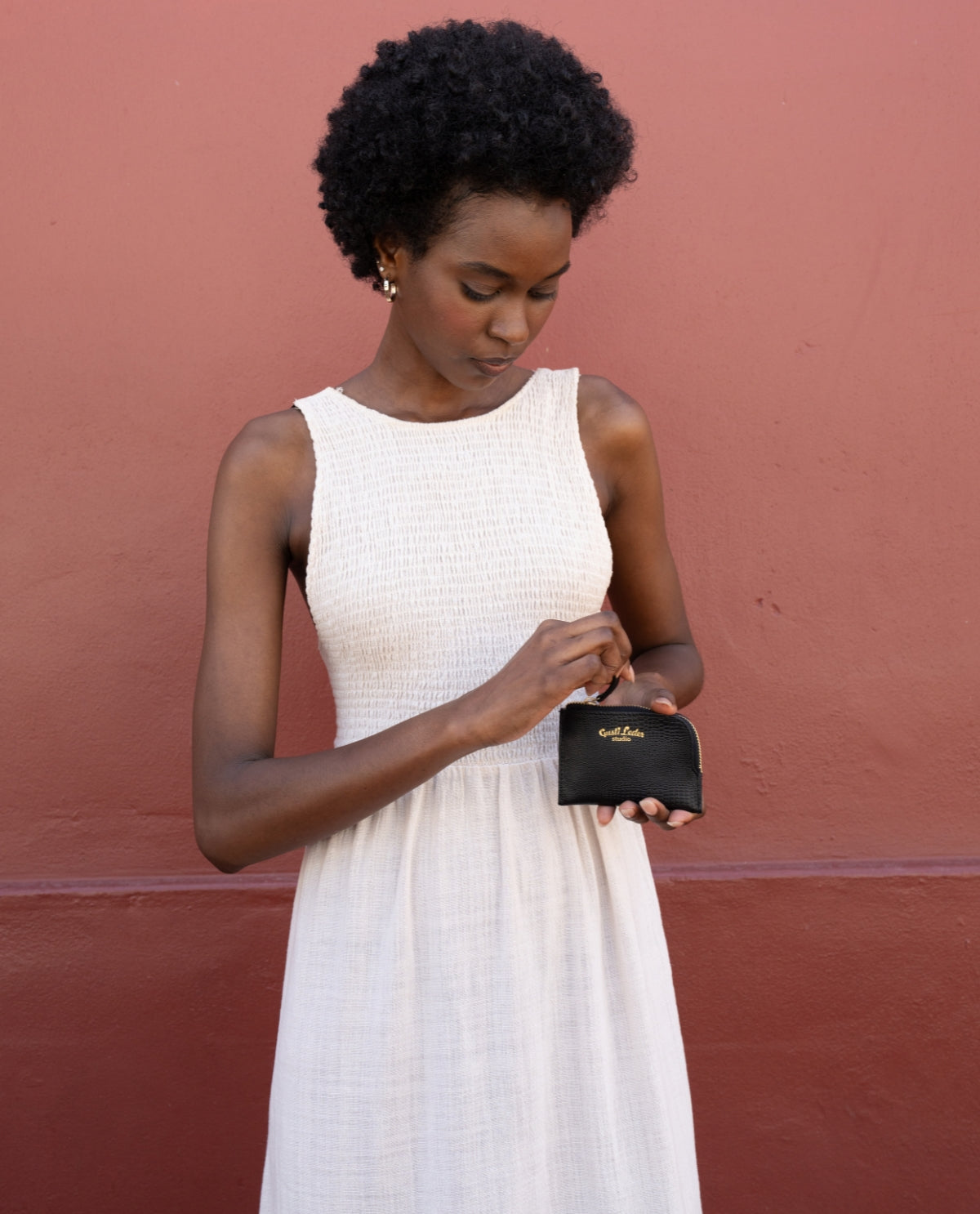Not a fan of big chunky purses? But still want to keep your belongings in one place? Then “Irene” is just what you need! This slim purse fits into any pocket and will win you over with its discreet gold detailing. The durable crocodile-skin cowhide leather completes “Irene’s” look.