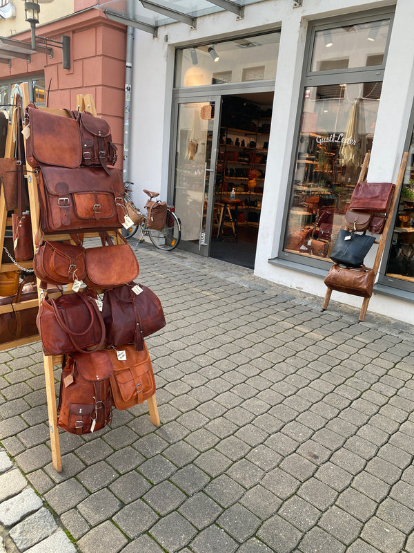 Are you on your way to the train station or coming from a long journey? Then stop by, we are just a minute's walk from the train station! From travel bags, toiletry bags, or wallets to your new favorite fanny pack, you will find everything your heart desires here. Erlangen is a university and bicycle city - if you are a student or an enthusiastic cyclist, you are in the right place with us! From handlebar to bicycle bags, we have everything in our small but fine assortment. We look forward to your visit!