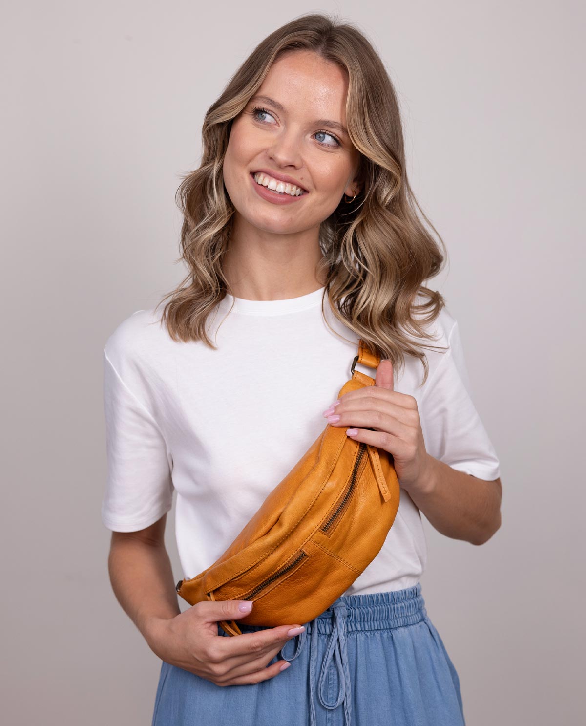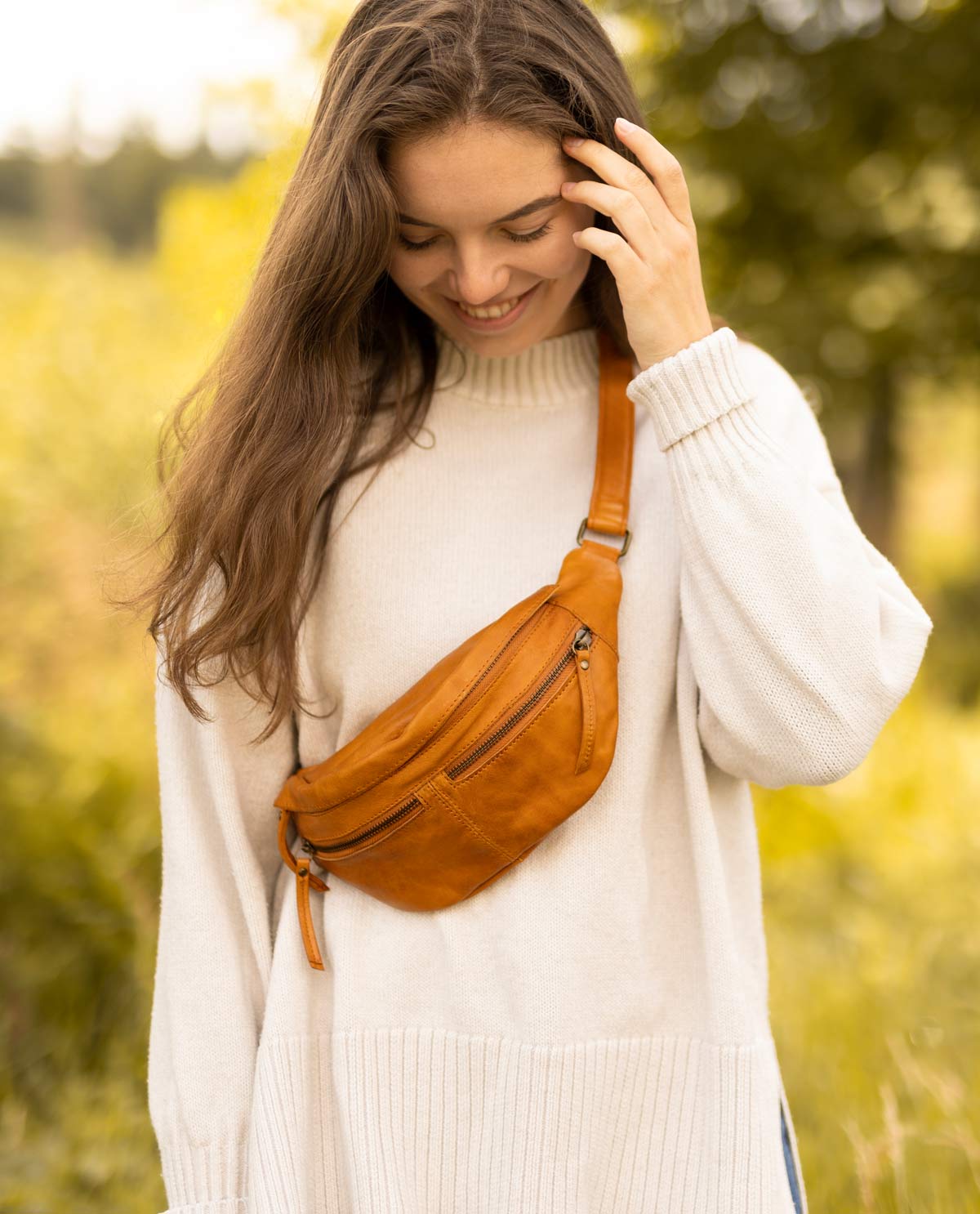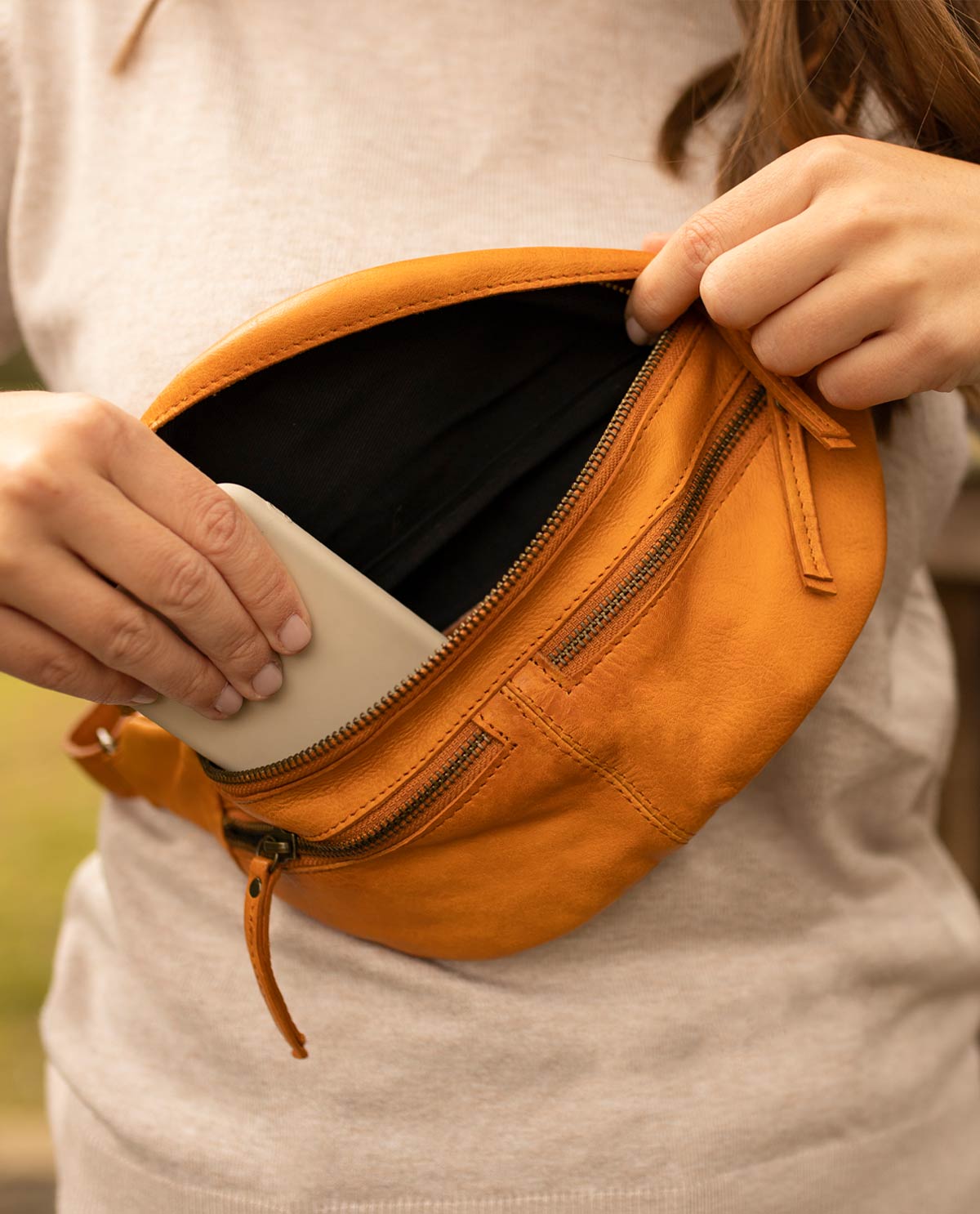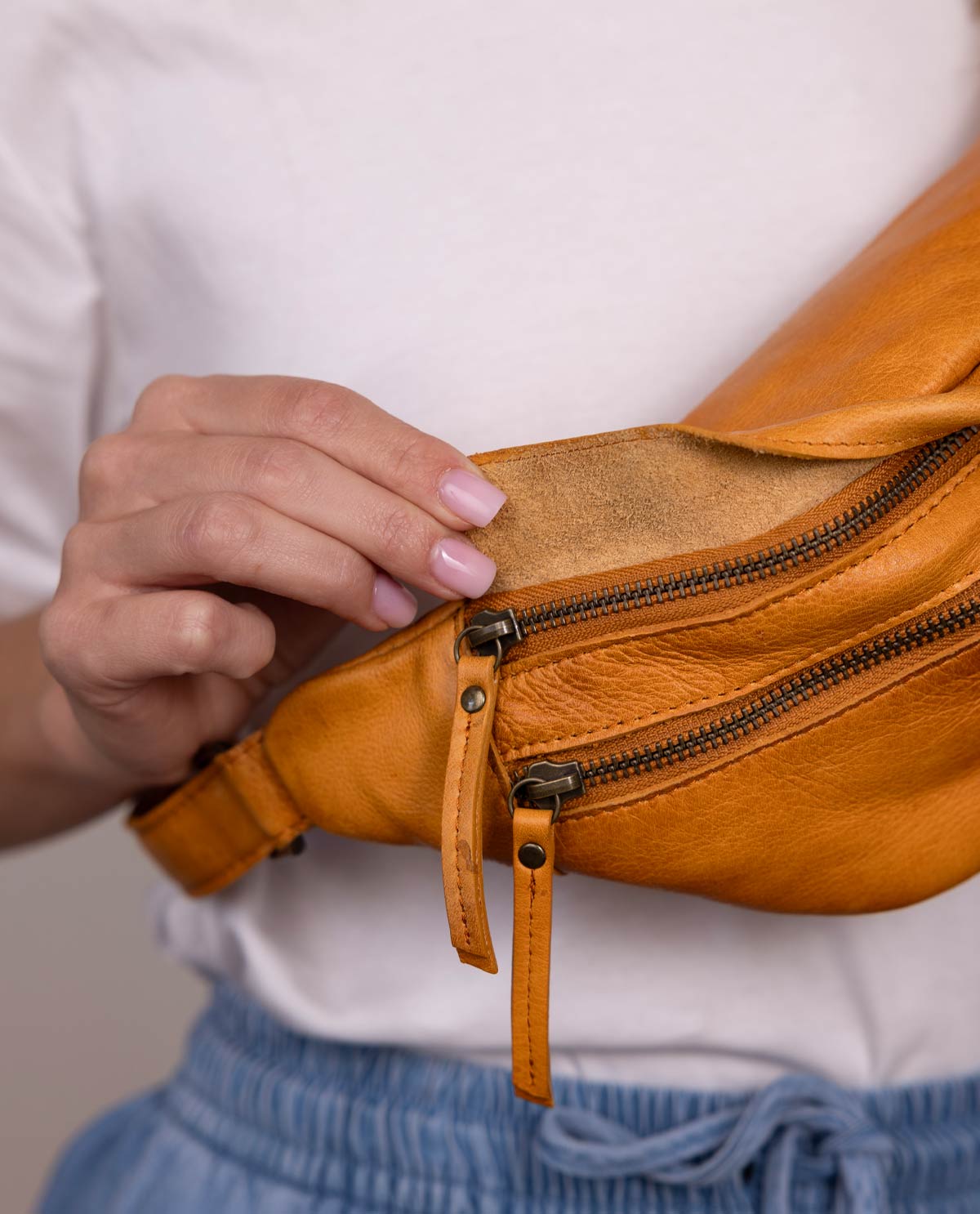 Are you looking for a cool belt bag that you can wear during festival season? Something handy where you can keep snacks or your essentials? Then “Acton” is exactly what you've been looking for! This cool vintage bag is made from sturdy cowhide leather and always looks good. There's plenty of space in the large main compartment for your belongings. You'll find two zipped pockets on the front of the bag where you can keep your essentials. Bring on Coachella! But that's not all... This spacious belt bag can be used all year round. Keep your wallet, keys and phone safe at concerts during the winter months.
