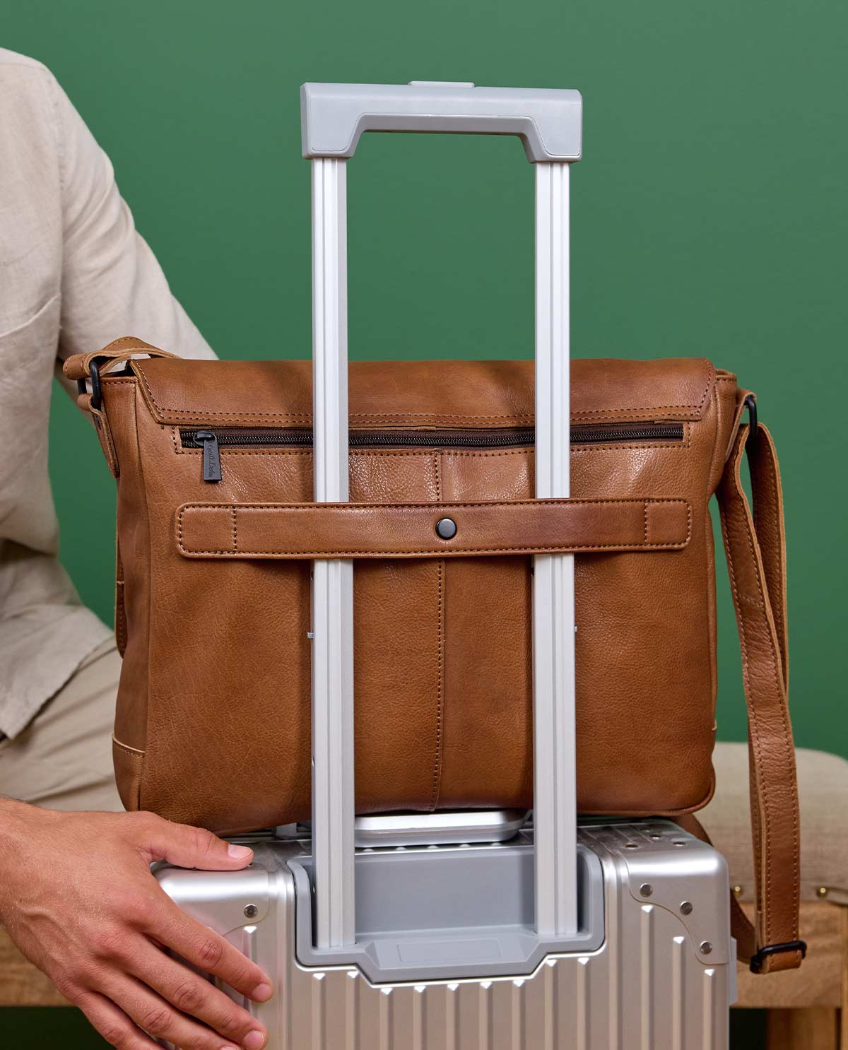 The "Attila" not only offers excellent organization but also versatile usage options. The adjustable shoulder strap allows you to carry it comfortably, while the additional zippered pockets inside and on the back let you securely store small items like pens or cards. A particularly practical feature is the strap on the back, which lets you securely attach the bag to your rolling suitcase. For cyclists, the bag also offers an additional security strap, allowing you to conveniently attach it to your bike – so your laptop is always safe on the go!