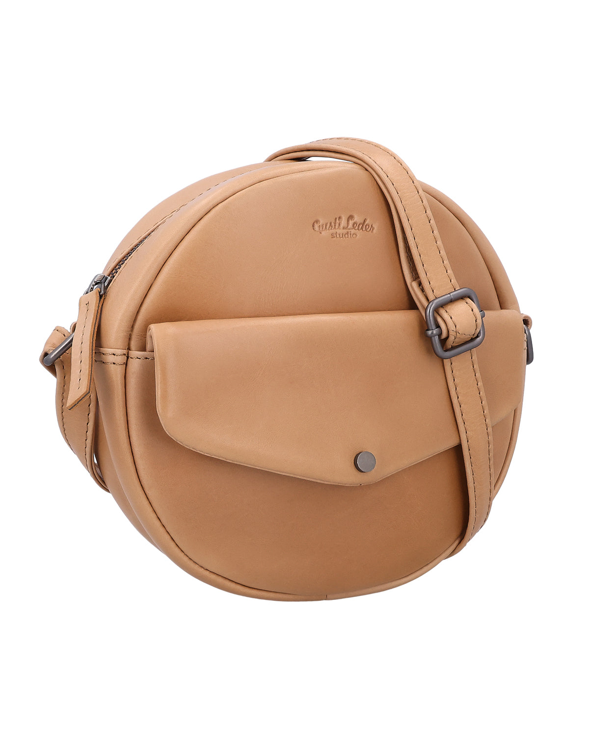Inside, card slots, a zippered compartment, and an additional slip pocket make it easy to organize your most important items. Another zippered compartment on the back provides quick access, while the front exterior pocket with magnetic closure is ideal for everything you need on the go. The long shoulder strap is adjustable and adapts to your carrying comfort, while the sturdy metal zipper closes the bag securely. An engraved patch inside the bag makes "Tora" customizable, and the Gusti logo on the outside rounds off this small leather handbag perfectly.