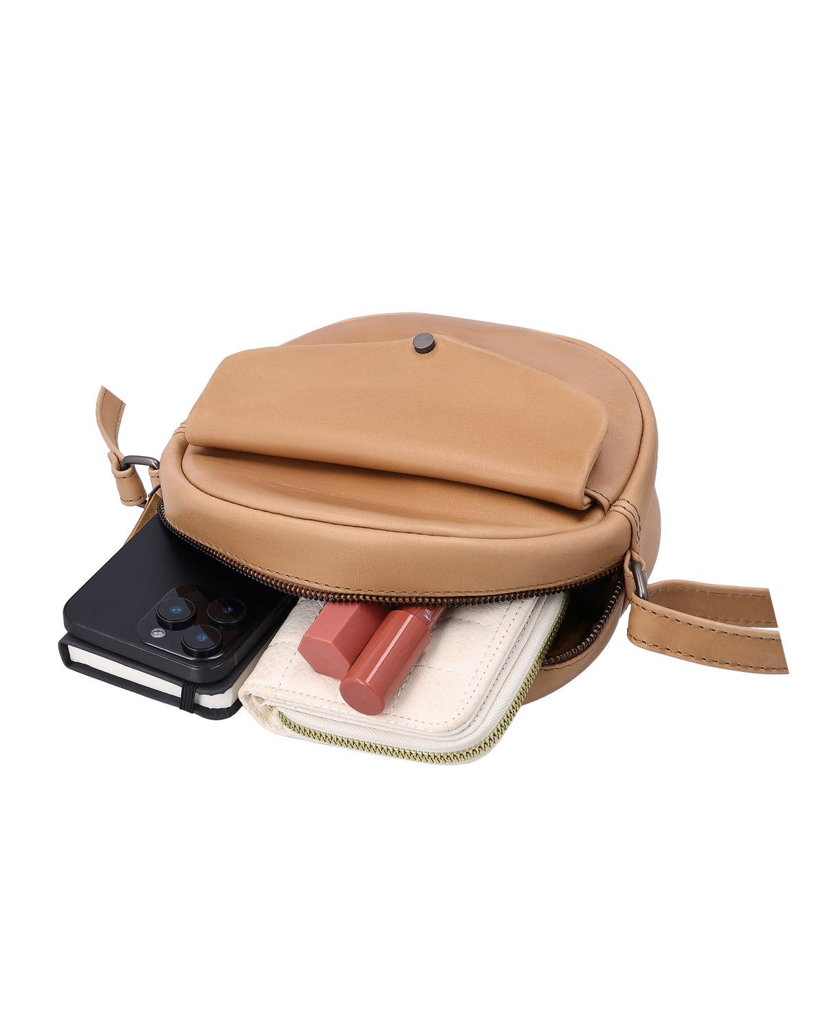 The small "Tora" shoulder bag is a versatile leather handbag for women who want to combine functionality with stylish restraint. Made from high-quality cowhide leather in a soft beige, it has a modern and pleasantly timeless look. A hidden AirTag compartment provides additional security, while a removable key ring keeps your essentials quickly to hand. Despite its compact shape, "Tora" offers exactly the space you need for everyday use – clearly organized, lightweight, and always suitable.