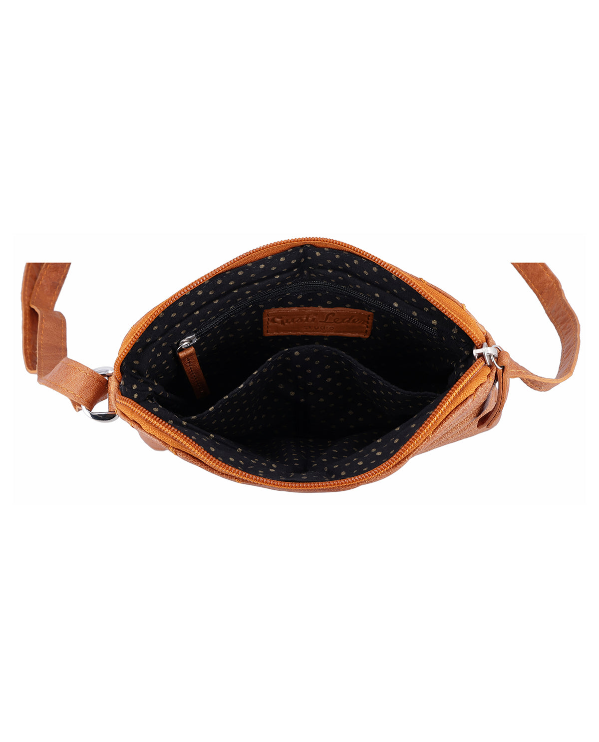 The small "Aline" handbag is a leather handbag for women who want to consciously integrate color and texture into their everyday lives. The brown leather has a lively look and the striking pattern on the surface makes it a special eye-catcher that immediately adds lightness to your outfit. Despite its compact size, "Aline" offers exactly the flexibility you need in everyday life thanks to its zippered main compartment and adjustable shoulder strap. This leather shoulder bag accompanies you through the day in a relaxed manner, making a clear, positive style statement.