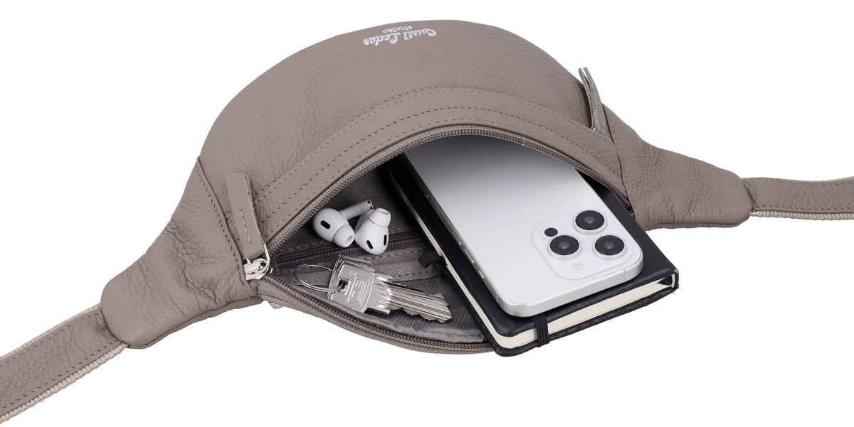 "Spencer" focuses on the essentials: simple design, high-quality materials, and thoughtful functionality. Made from sturdy leather, the belt bag not only offers an elegant appearance but also pleasant shape stability and durability. The practical zippered compartments provide ample space for all your essentials – from the smartphone to the wallet, from the keys to other small treasures. This way, you are perfectly prepared without having to sacrifice comfort or style.