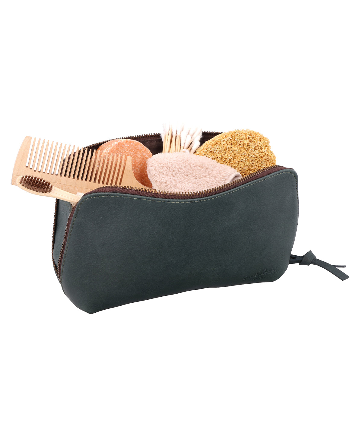 Made from high-quality, durable leather, "Eli" offers the perfect space for all your toiletries. The spacious main compartment inside offers enough space for deodorant, shampoo, conditioner, toothpaste, toothbrush, and much more. The design of "Eli" is rounded off with a matching zipper. This keeps everything together and optimally stored.