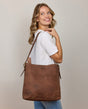 The "Moje" handbag in elegant brown combines stylish design with thoughtful functionality and is the perfect companion for every woman. The adjustable shoulder strap with brass buckle allows you to carry the bag according to your wishes – comfortably over the shoulder or across the body. With the practical magnetic closure, the contents are securely stored, while the thoughtful interior layout ensures perfect organization. The laptop compartment offers ample space for your laptop and protects it reliably. Two additional open compartments are ideal for your phone, charger, or other important small items.