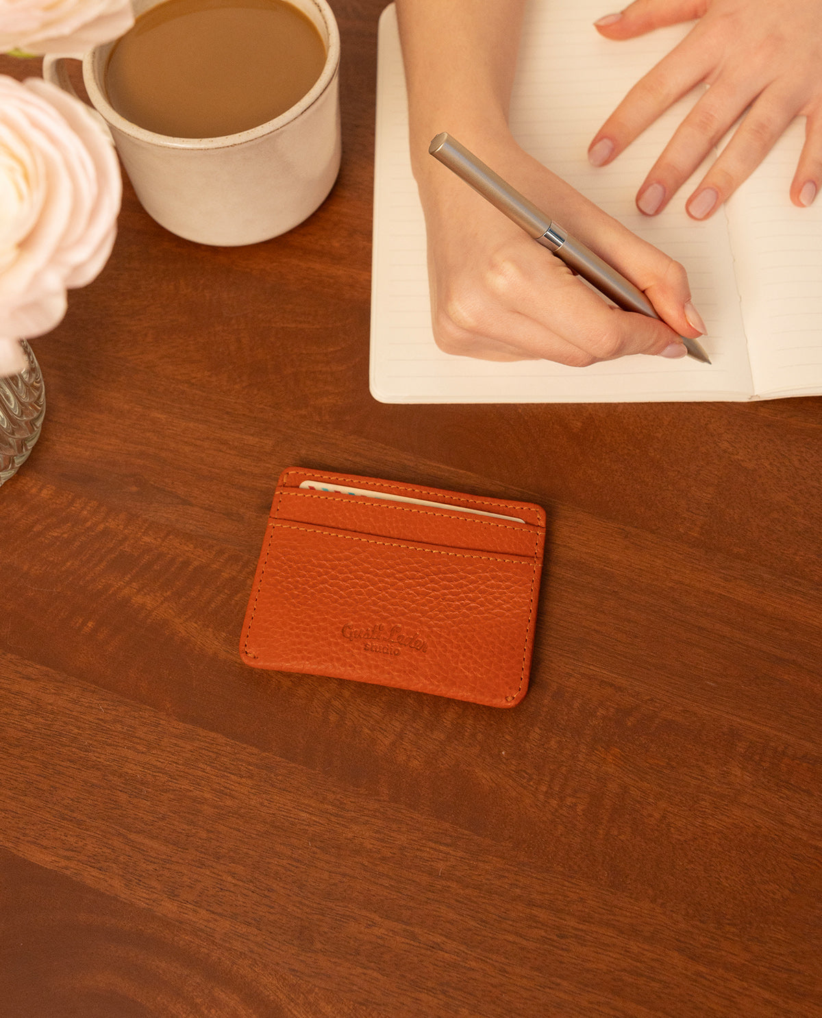 Practical and stylish – the "Qani" card holder made of orange leather