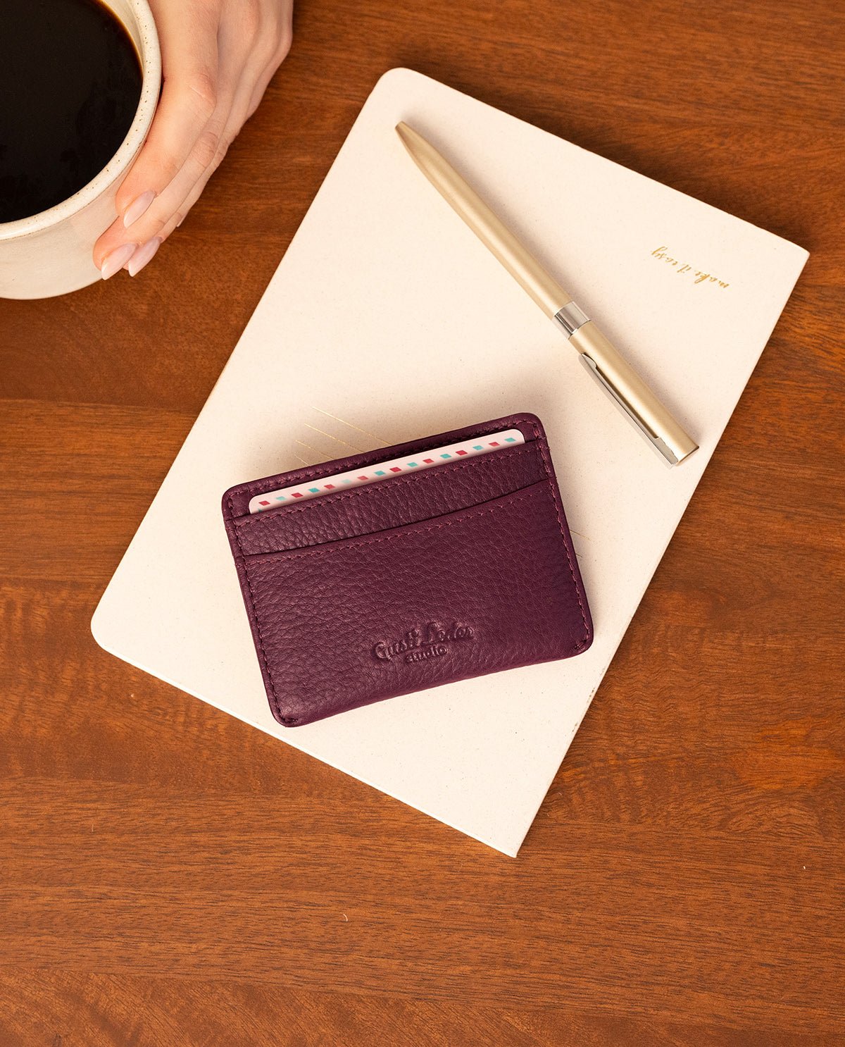 The "Qani" card case is the perfect choice for anyone who values organization and elegance. Made from high-quality purple leather, it impresses with its compact size and elegant design. The noble color and fine craftsmanship make it a stylish accessory that is not only functional but also a real eye-catcher. With this card case, you always have everything important with you – and in the best quality.