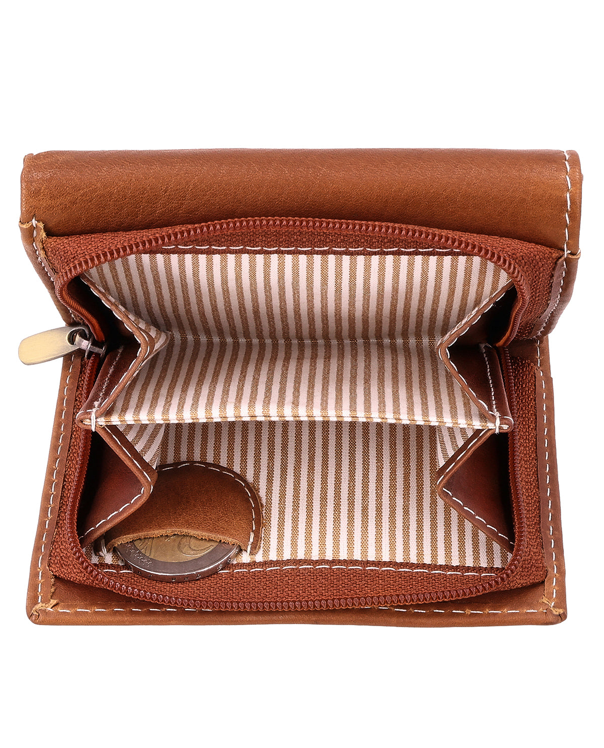 “August” will win you over with its handy size and storage space. There's space for up to 6 cards. “August” has an extra transparent slot for your ID. The coin pocket is split in two, so you can separate your coins and bills. The striped lining completes “August's” design. Use the zip and press button to secure your things inside. Take your essentials with you wherever you go. “August's” got your back!