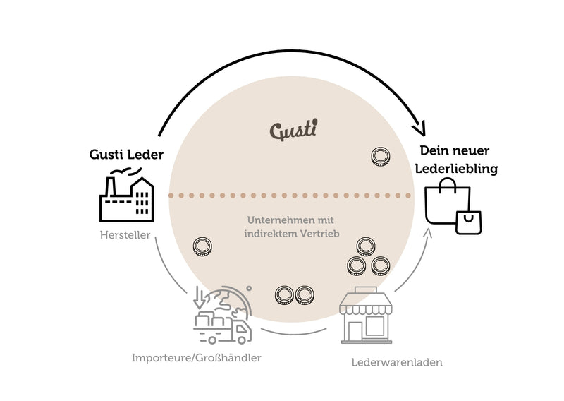 Gusti Leder spricht sich entschieden gegen diese Art der Produktion aus und wählt bewusst andere Produktionsverfahren.