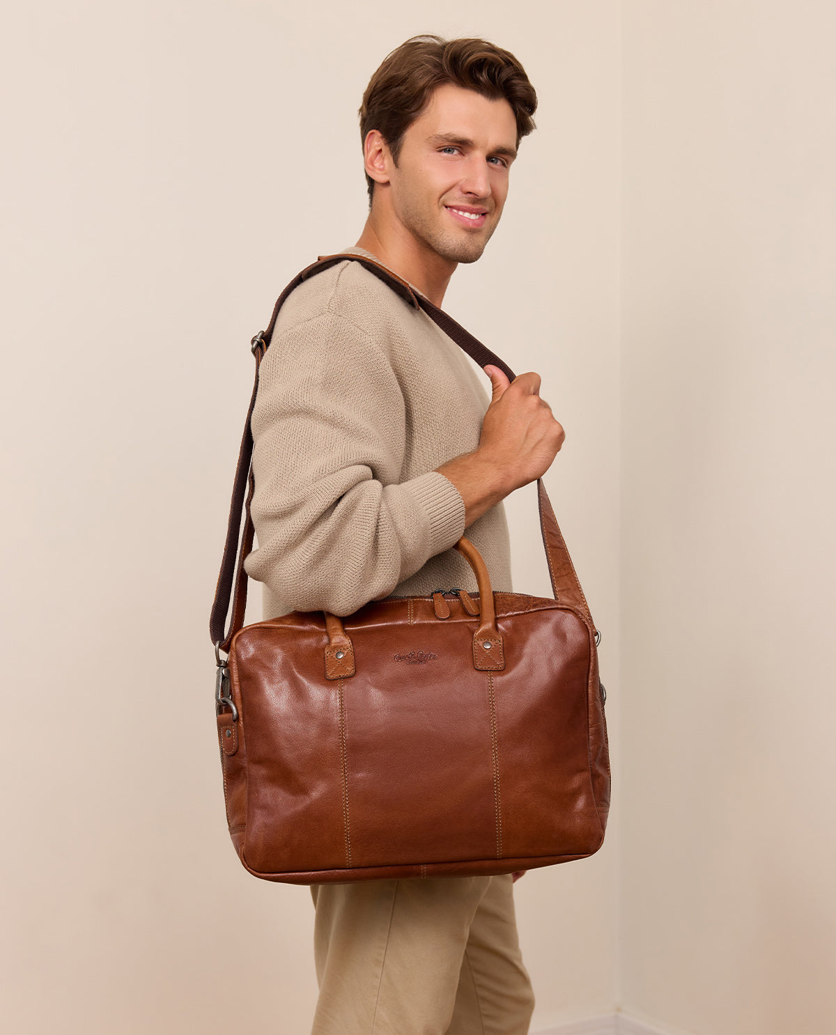 Gefertigt aus erstklassigem braunem Leder, verleiht die Aktentasche nicht nur ein authentisches Vintage-Aussehen, sondern garantiert auch hohe Langlebigkeit. Das sorgfältig verarbeitete Material hält den täglichen Anforderungen stand. Mit ihrem großzügigen Hauptfach, inklusive gepolsterter Laptoptasche für Geräte bis 15 Zoll, sowie zusätzlichen Innen- und Außentaschen, bietet sie ausreichend Platz für Dokumente, Ordner, Karten und Handy. Die verstellbaren Schultergurte sorgen für hohen Tragekomfort, egal ob Du die Tasche als Umhängetasche oder Messenger Bag nutzt.