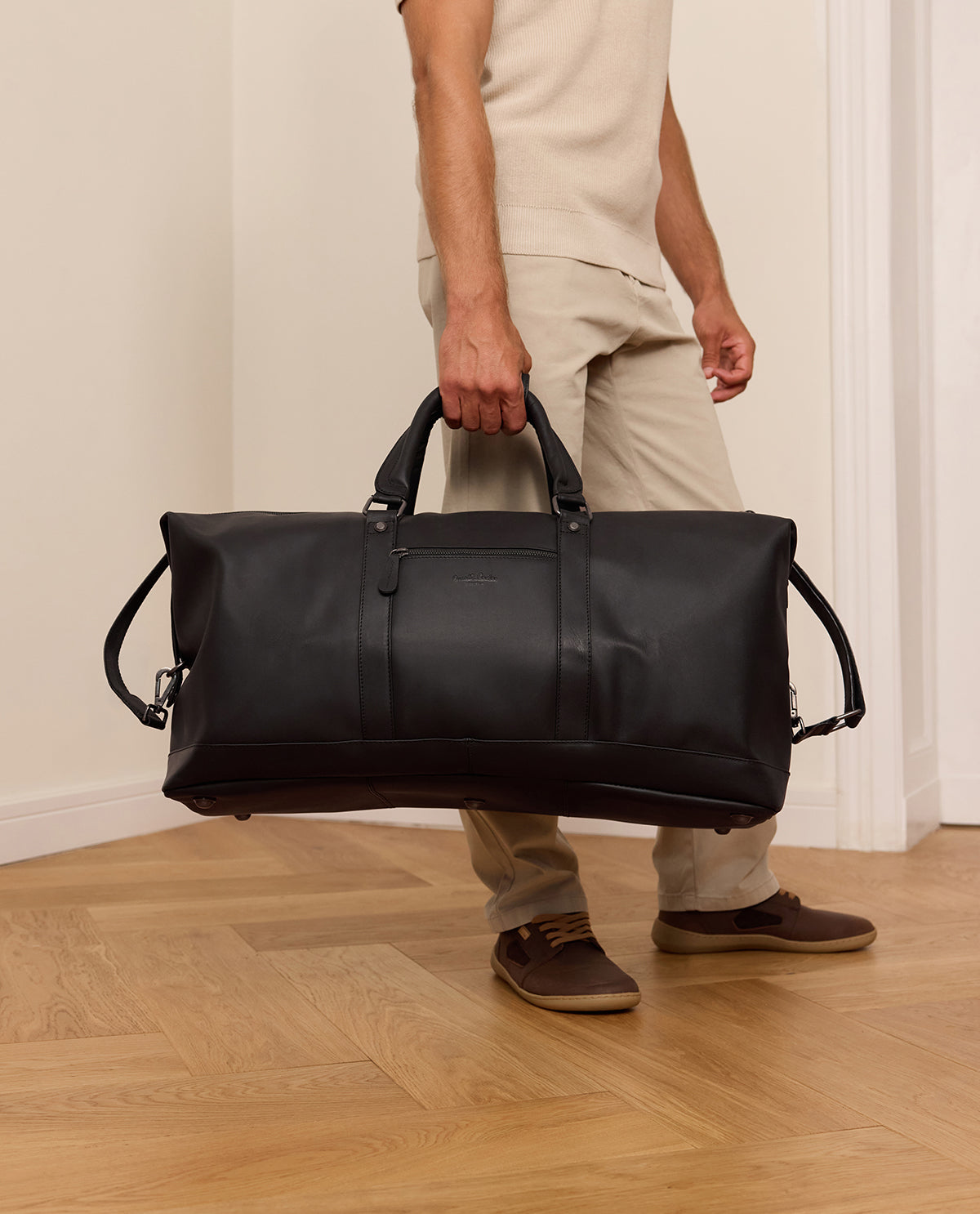 Denn diese sehr geräumige Reisetasche aus Leder besticht nicht nur durch ihr zeitlos-klassisches Design, sondern überzeugt auch mit Tragekomfort und unheimlich viel Platz. So finden ausreichend Wechselsachen und Schuhe ebenso ihren Platz wie auch Dein aktuelles Lieblingsbuch, die Waschtasche oder sogar Dein Notebook, falls Du abends dann doch noch etwas für die Arbeit erledigen musst. Auf der Vorderseite findet sich außerdem ein zusätzliches Reißverschluss-Außenfach, in dem Du Dinge wie Schlüssel, Taschentücher, eine kleine Notfall-Apotheke und vieles mehr verstauen kannst. Der angesagte Used-Look des Leders verleiht "Fernando" den Charme einer Vintage-Reisetasche, ohne dabei auf die Vorzüge moderner Reisetaschen zu verzichten. Auch in Sachen Komfort lässt sich "Fernando" nicht die Butter vom Brot nehmen. Denn durch die zwei festen Tragehenkel, die durch einen abnehmbaren Schultergurt ergänzt werden, kannst Du "Fernando" genau so tragen, wie Du es gerade willst.