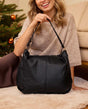 Du suchst einen klassischen Shopper, der Dich nicht im Regen stehen lässt? Dann ist „Hannah“ genau die Richtige für Dich. Diese mittelgroße Umhängetasche besteht aus robustem und widerstandsfähigem Büffelleder in elegantem Schwarz. So liegst Du voll im Trend und hast dennoch durch das geräumige Innenfach genug Platz für alles, was Du bei einem Stadtbummel oder im Berufsalltag brauchst. Inspiriert vom urbanen Berliner Großstadt Flair vereint „Hannah“ Stil und Funktionalität.